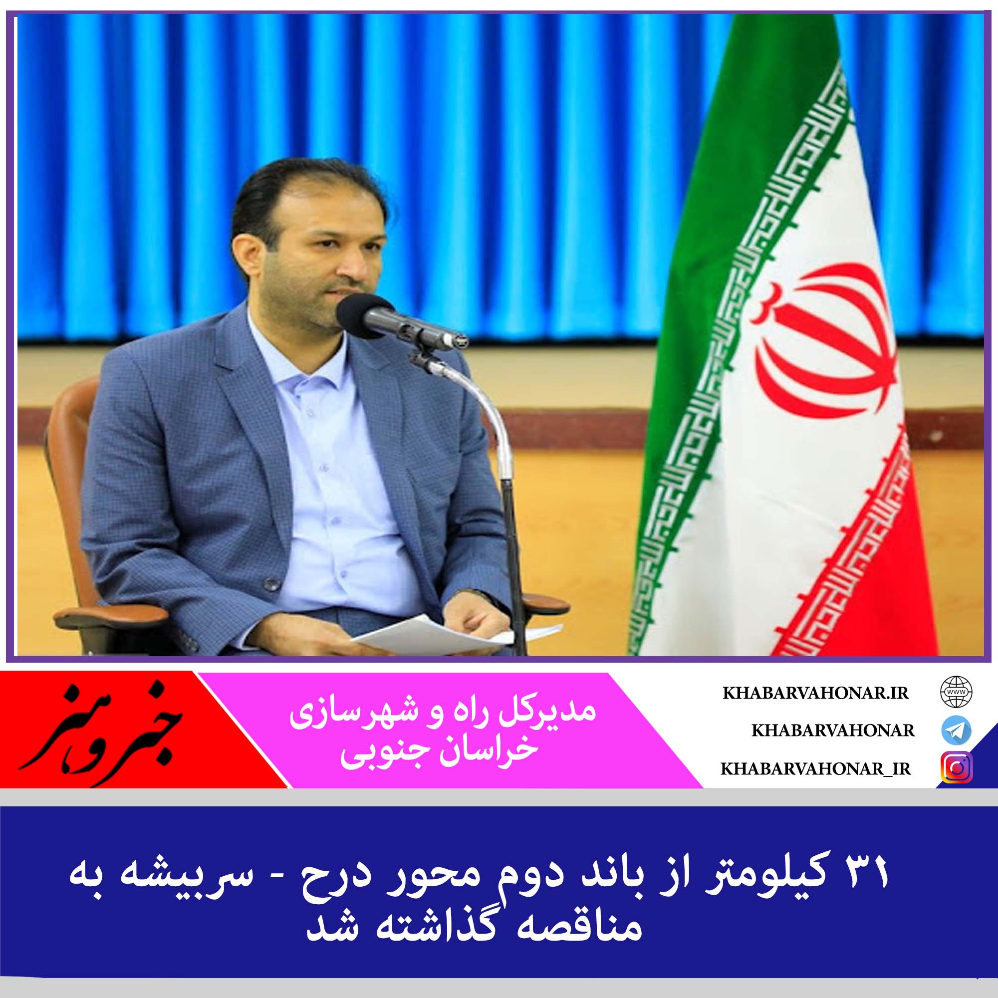 مدیرکل راه و شهرسازی خراسان جنوبی گفت: با پیگیریهای مستمر ۳۱ کیلومتر دیگر از باند دوم محور درح – سربیشه به مناقصه گذاشته شد تا قسمتی دیگر از این مسیر تعیین تکلیف شود.