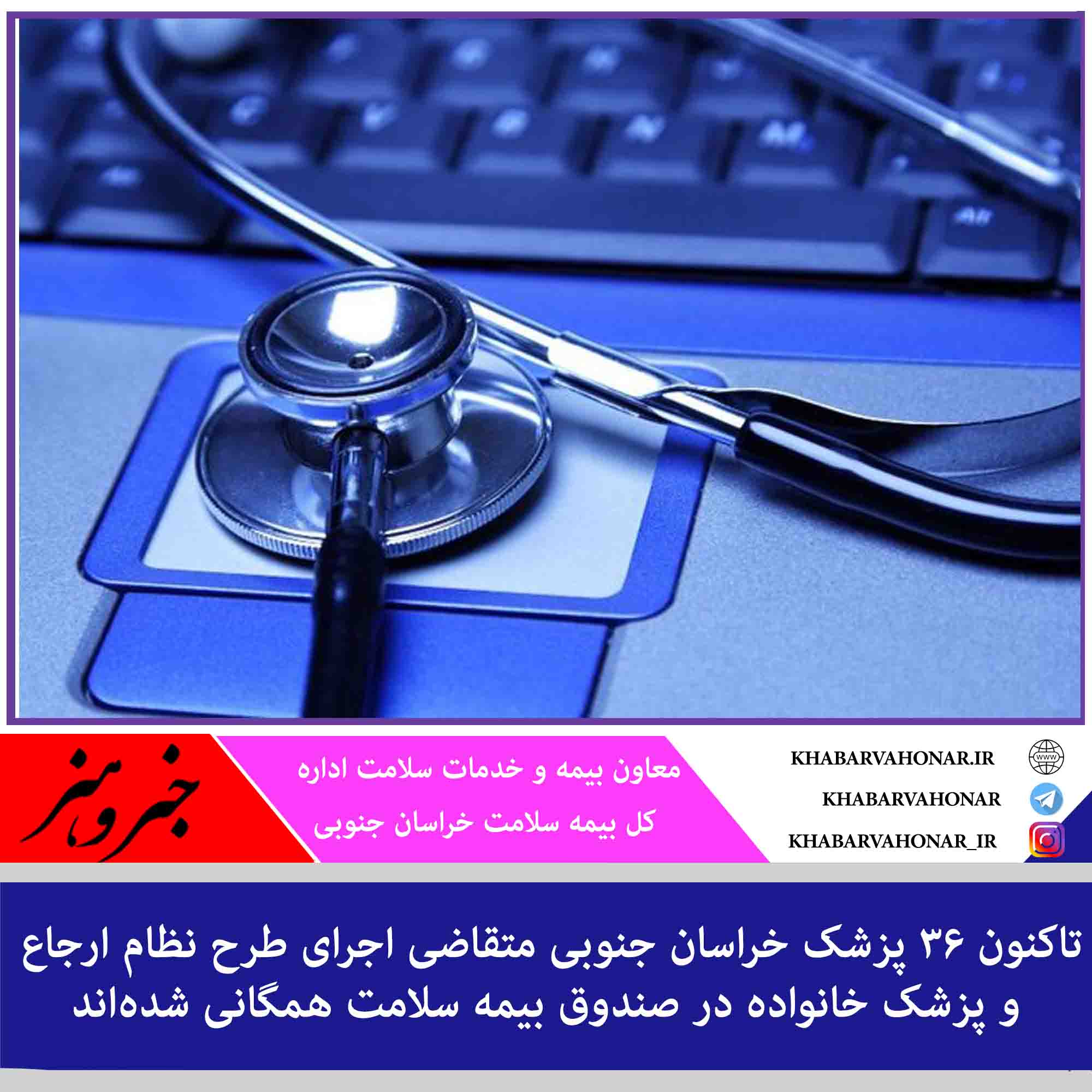 معاون بیمه و خدمات سلامت اداره کل بیمه سلامت خراسان جنوبی گفت: تاکنون ۳۶ پزشک در این استان متقاضی اجرای طرح نظام ارجاع و پزشک خانواده در صندوق بیمه سلامت همگانی شدهاند.
