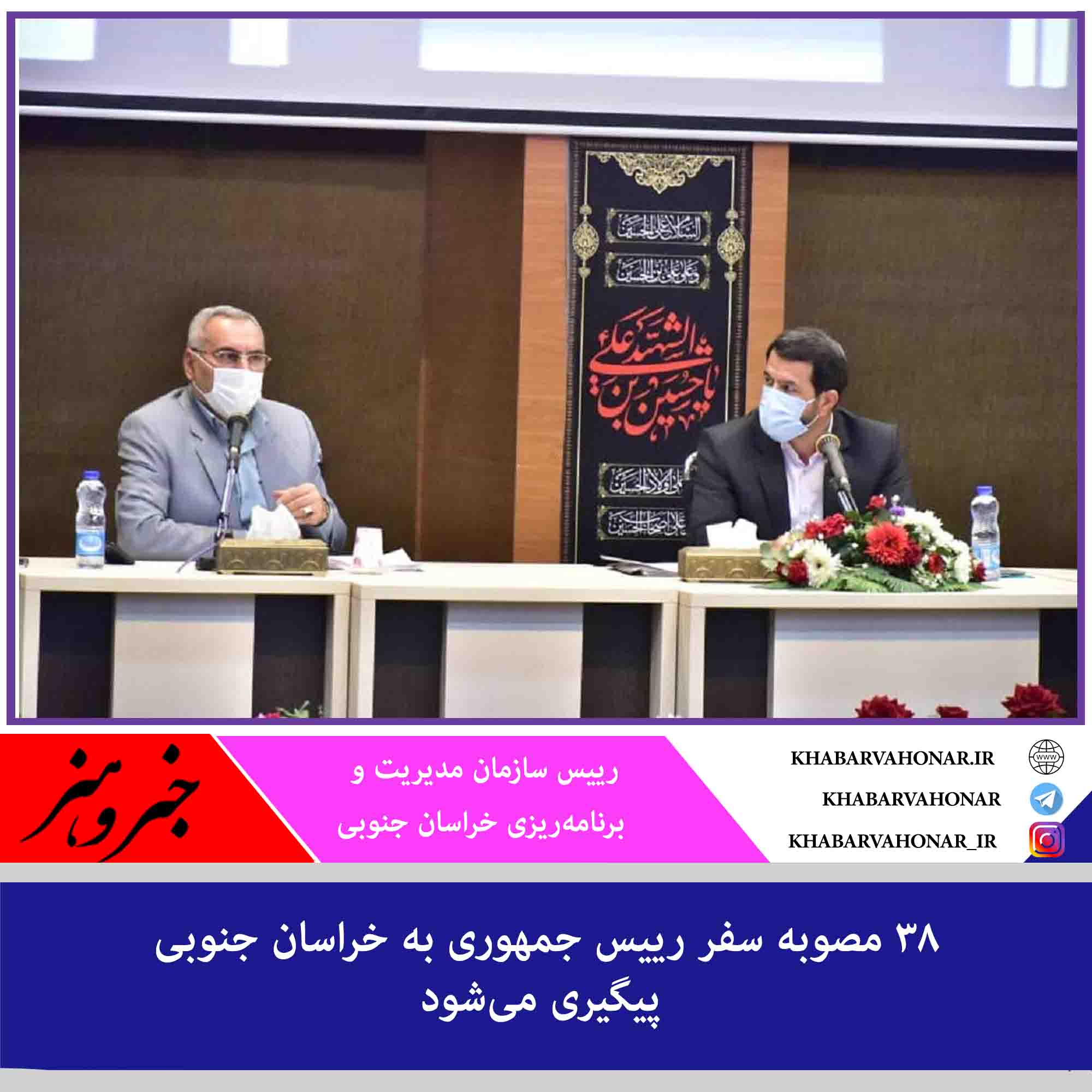 رییس سازمان مدیریت و برنامهریزی خراسان جنوبی اعلام کرد: در ارتباط با سفر یک روزه رییس جمهوری به استان ۳۸ مصوبه توسط دستگاههای اجرایی استان درخواست شده که مباحث مربوط به اجرای آنها و اخذ اعتبار در دست پیگیری است.
