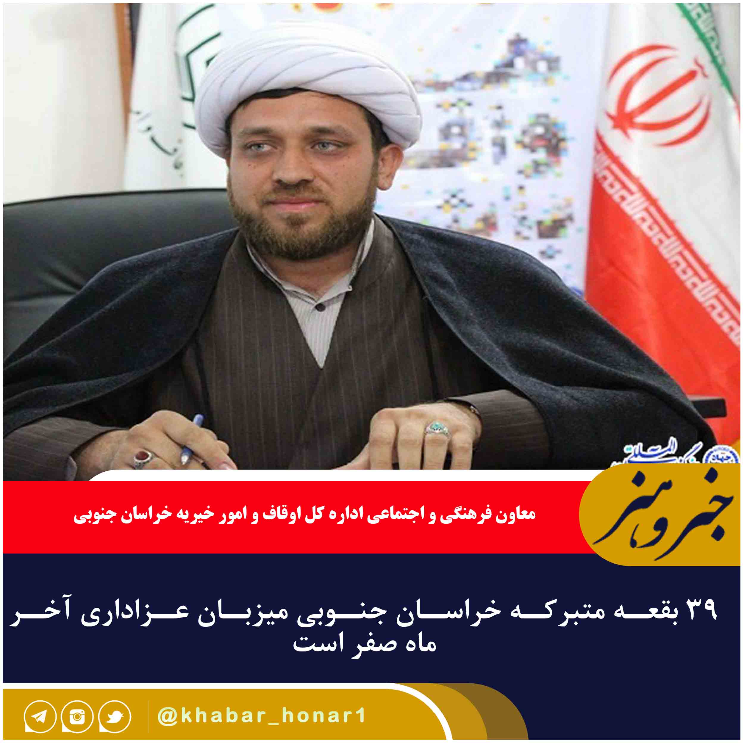معاون فرهنگی و اجتماعی اداره کل اوقاف و امور خیریه خراسان جنوبی گفت: ۳۹ بقعه متبرکه این استان در روزهای پایانی ماه صفر میزبان زائران و عزاداران است.