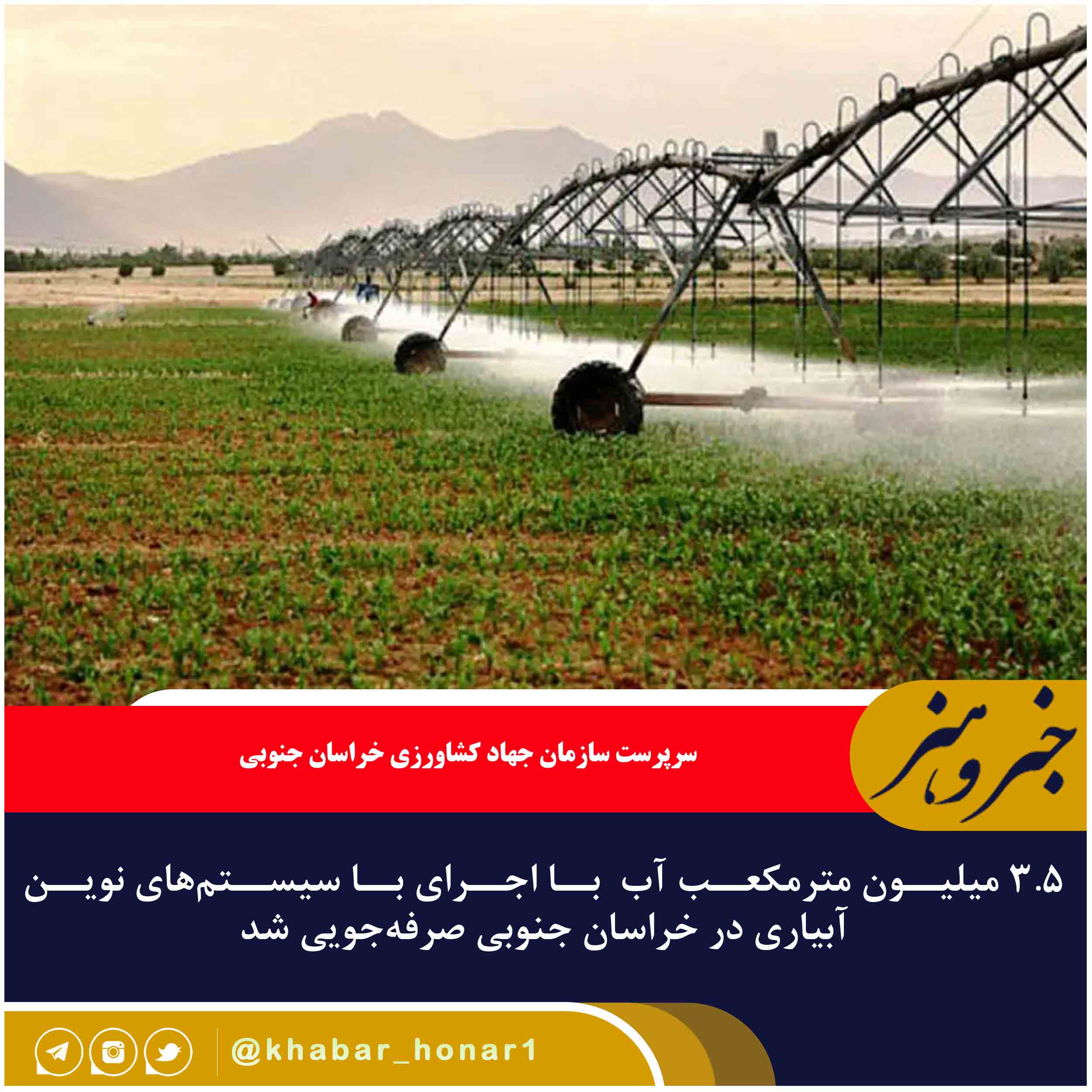 ۳.۵ میلیون مترمکعب آب با اجرای با سیستم‌های نوین آبیاری در خراسان جنوبی صرفه‌جویی شد