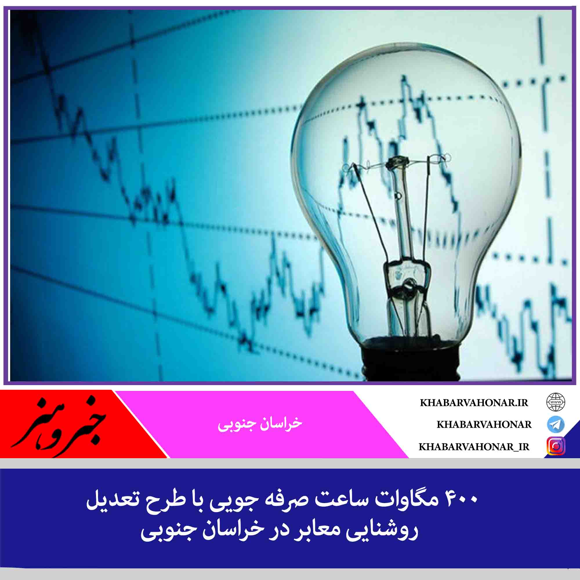 معاون بهرهبرداری و دیسپاچینگ شرکت توزیع نیروی برق خراسان جنوبی گفت: با اجرای طرح تعدیل روشنایی معابر در استان ۴۰۰ مگاوات ساعت در مصرف برق صرفهجویی شد.