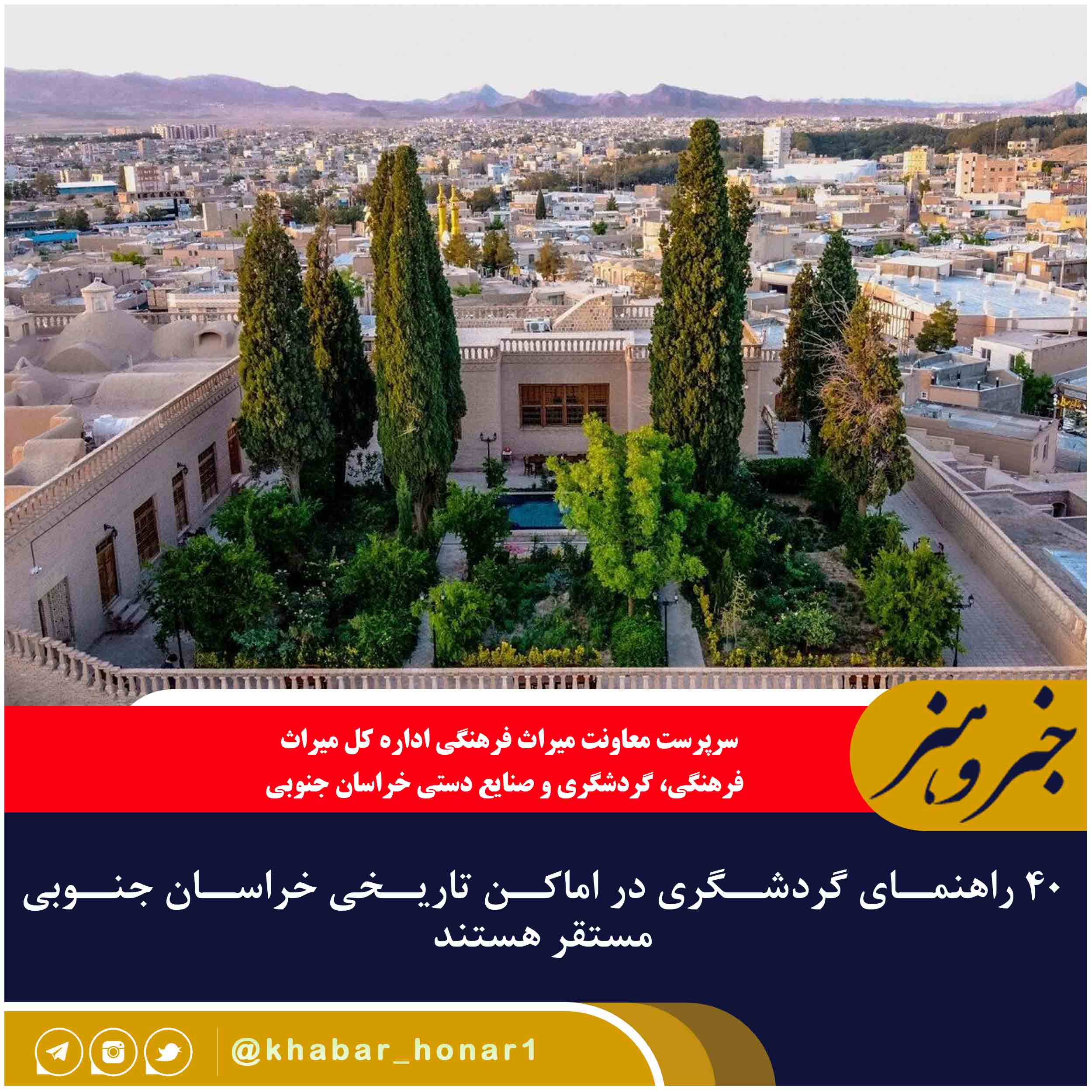 سرپرست معاونت میراث فرهنگی، گردشگری و صنایع دستی خراسان جنوبی بیان کرد: بیشترین راهنمایان به دلیل تعدد آثار مرکز استان در بیرجند مستقر هستند.