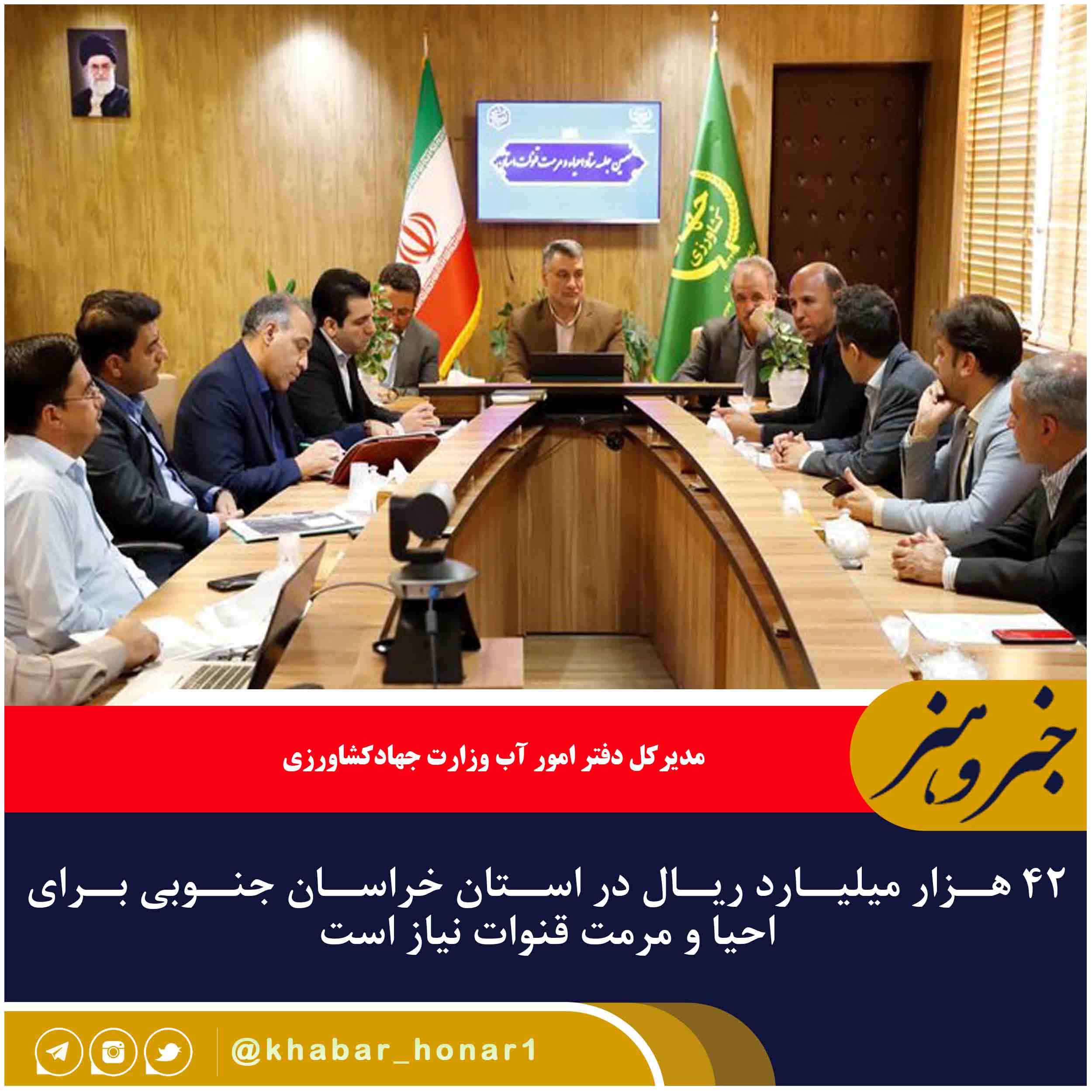 مدیرکل دفتر امور آب وزارت جهادکشاورزی افزود: ۴۲ هزار میلیارد ریال در استان خراسان جنوبی برای احیا و مرمت قنوات نیاز است اما امسال ۷۰۰ میلیارد ریال تخصیص یافته که با این روند تا ۶۰ سال دیگر هم نمیتوان به تکمیل طرحها امیدوار بود.