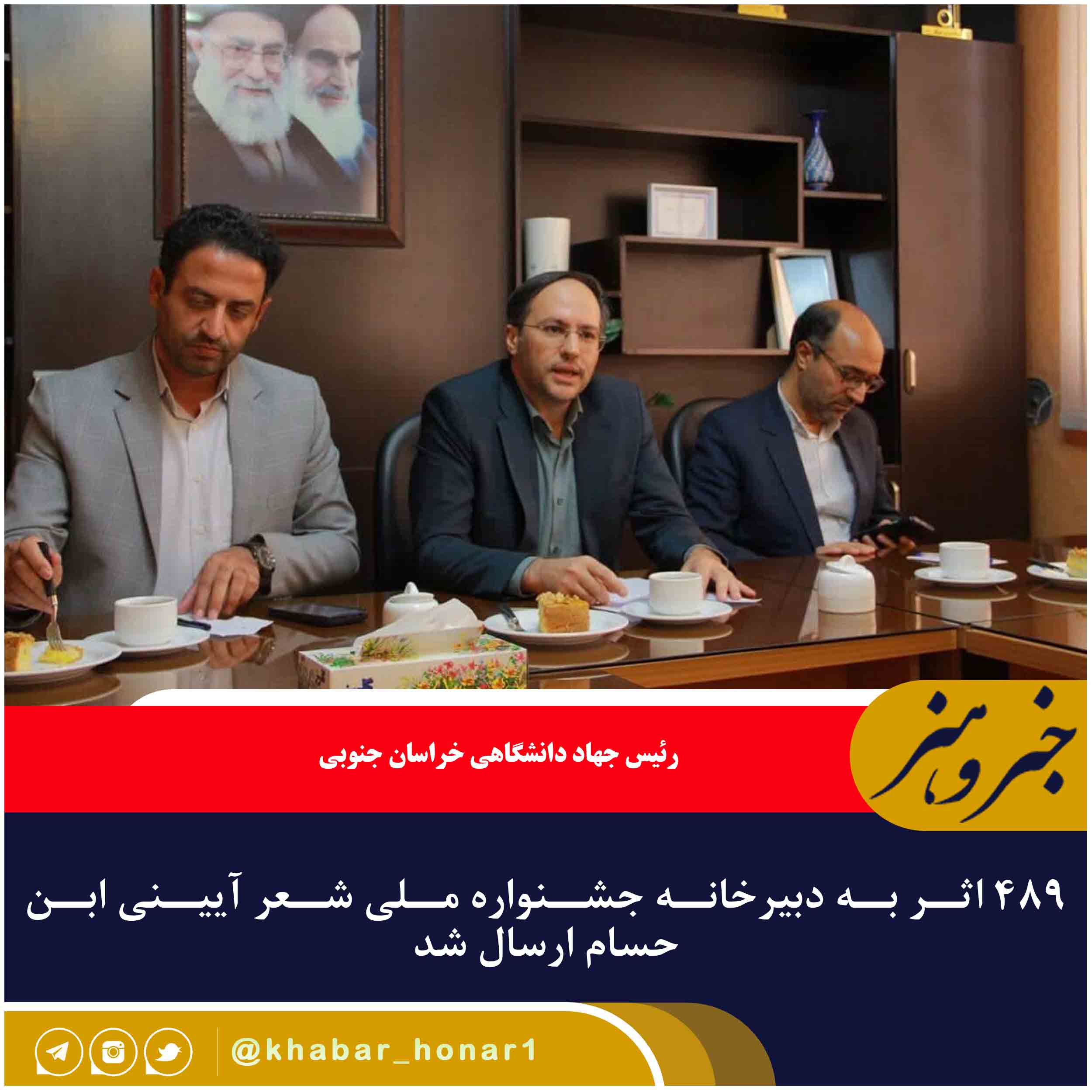 رئیس جهاد دانشگاهی خراسان جنوبی گفت: در مجموع ۴۸۹ اثر به دبیرخانه جشنواره ملی شعر آیینی ابن حُسام خوسفی رسید که ۲۳ اثر به مرحله داوری راه یافت و ۹ اثر برگزیده شد.