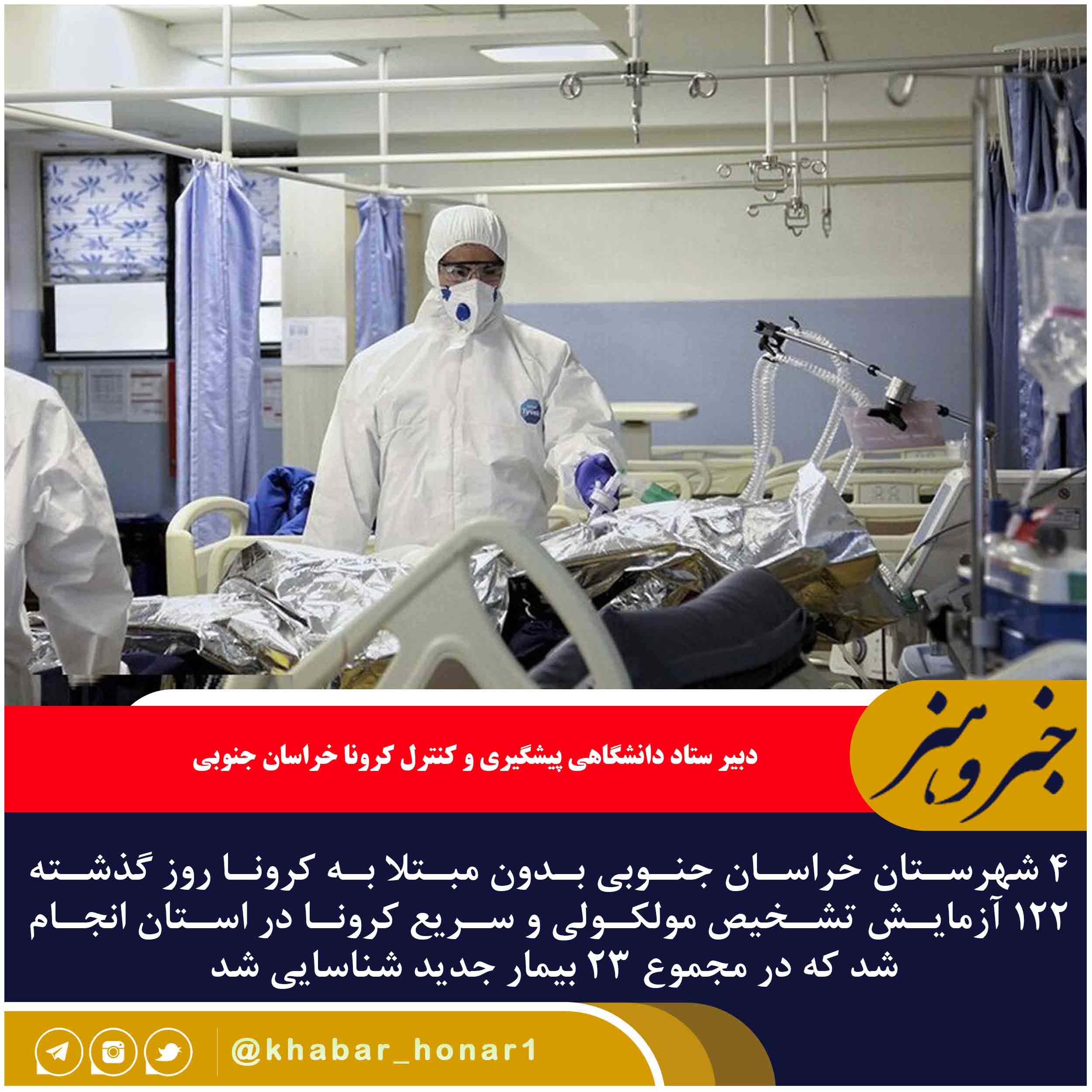 ۴ شهرستان خراسان جنوبی در شبانه روز گذشته بدون مبتلا به کرونا بوده است