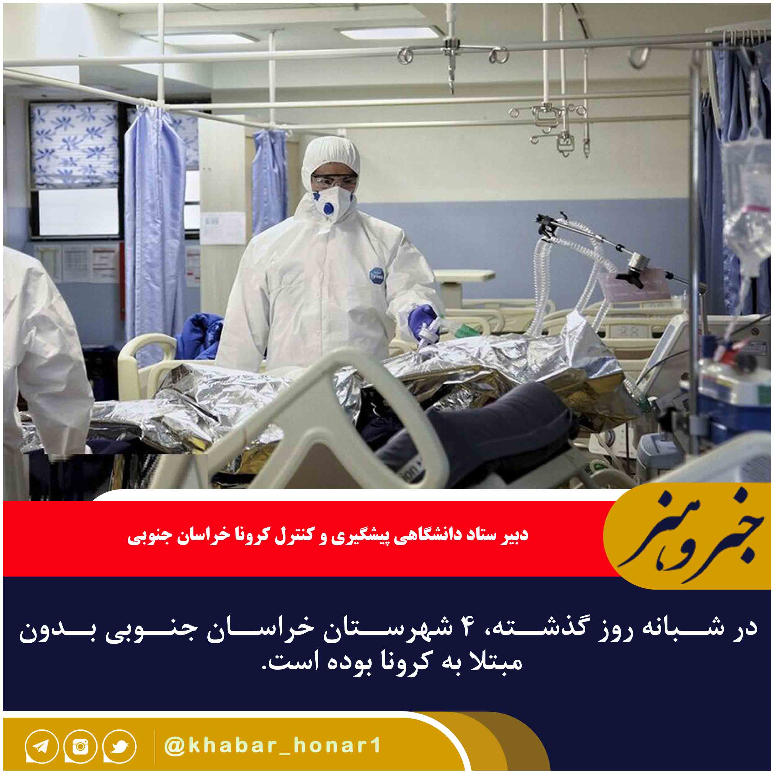 در شبانه روز گذشته، ۴ شهرستان خراسان جنوبی بدون مبتلا به کرونا بوده است.