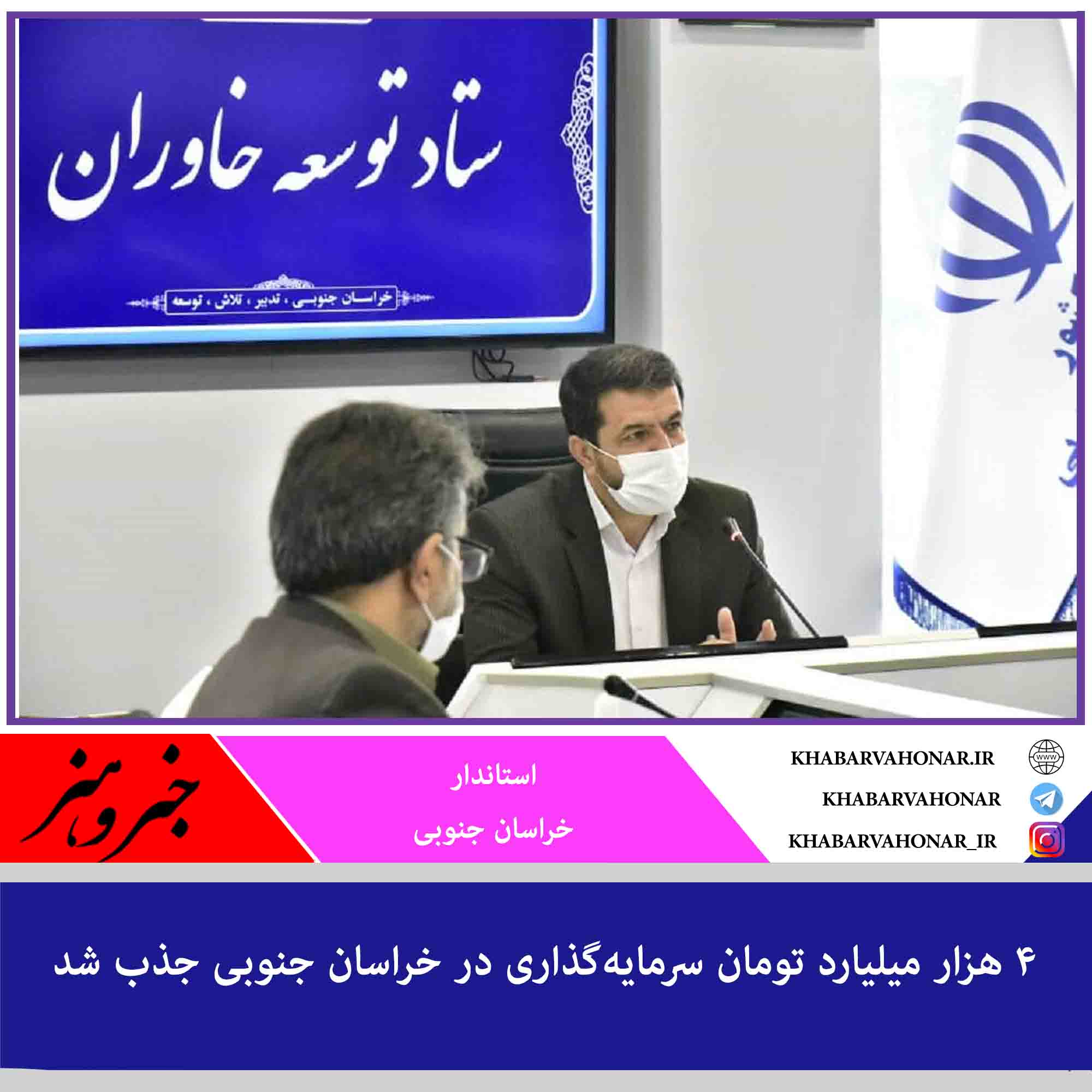 استاندار خراسان جنوبی گفت: از ابتدای راهاندازی ستاد توسعه خاوران تاکنون در استان خراسان جنوبی چهار هزار میلیارد تومان تفاهمنامه سرمایهگذاری با بخش خصوصی امضا شده و تمامی طرحها به مرحله اجرا درآمده است.