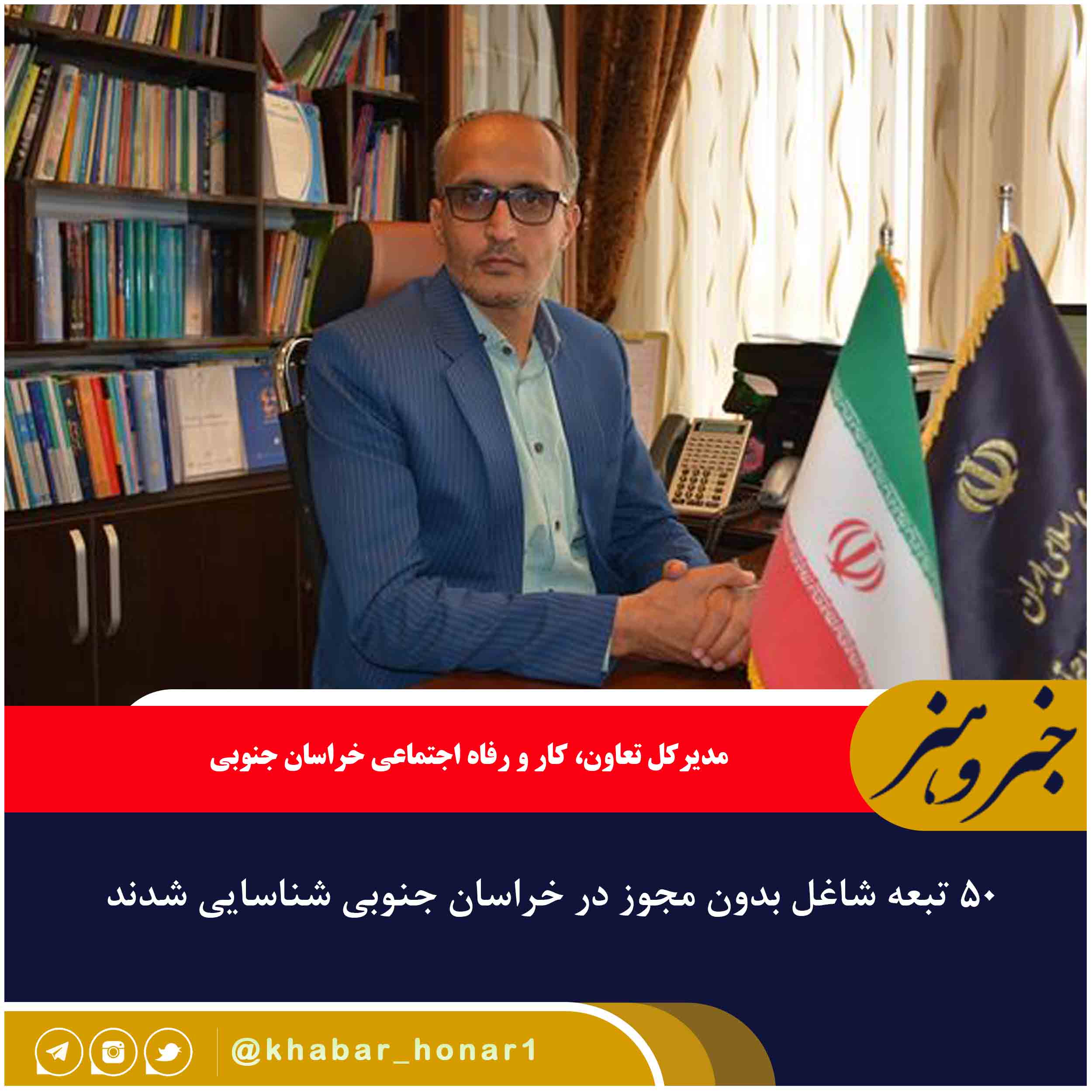 مدیرکل تعاون، کار و رفاه اجتماعی خراسان جنوبی گفت: طی بازرسیهای انجام شده بازرسان کار در سال گذشته ۵۰ تبعه خارجی غیرمجاز شاغل در کارگاههای استان شناسایی شدند.