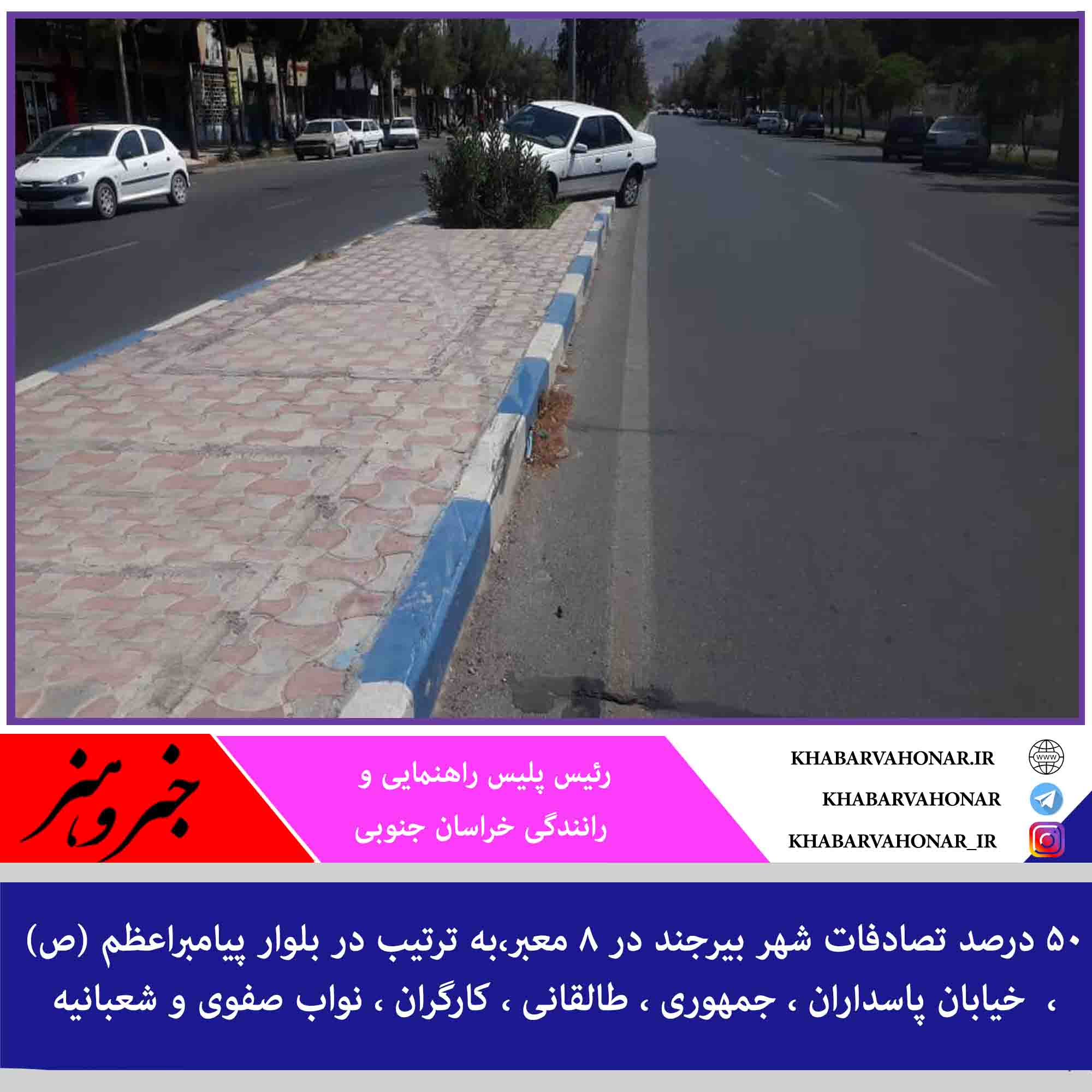 ۵۰ درصد تصادفات شهر بیرجند در ۸ معبر رخ داد