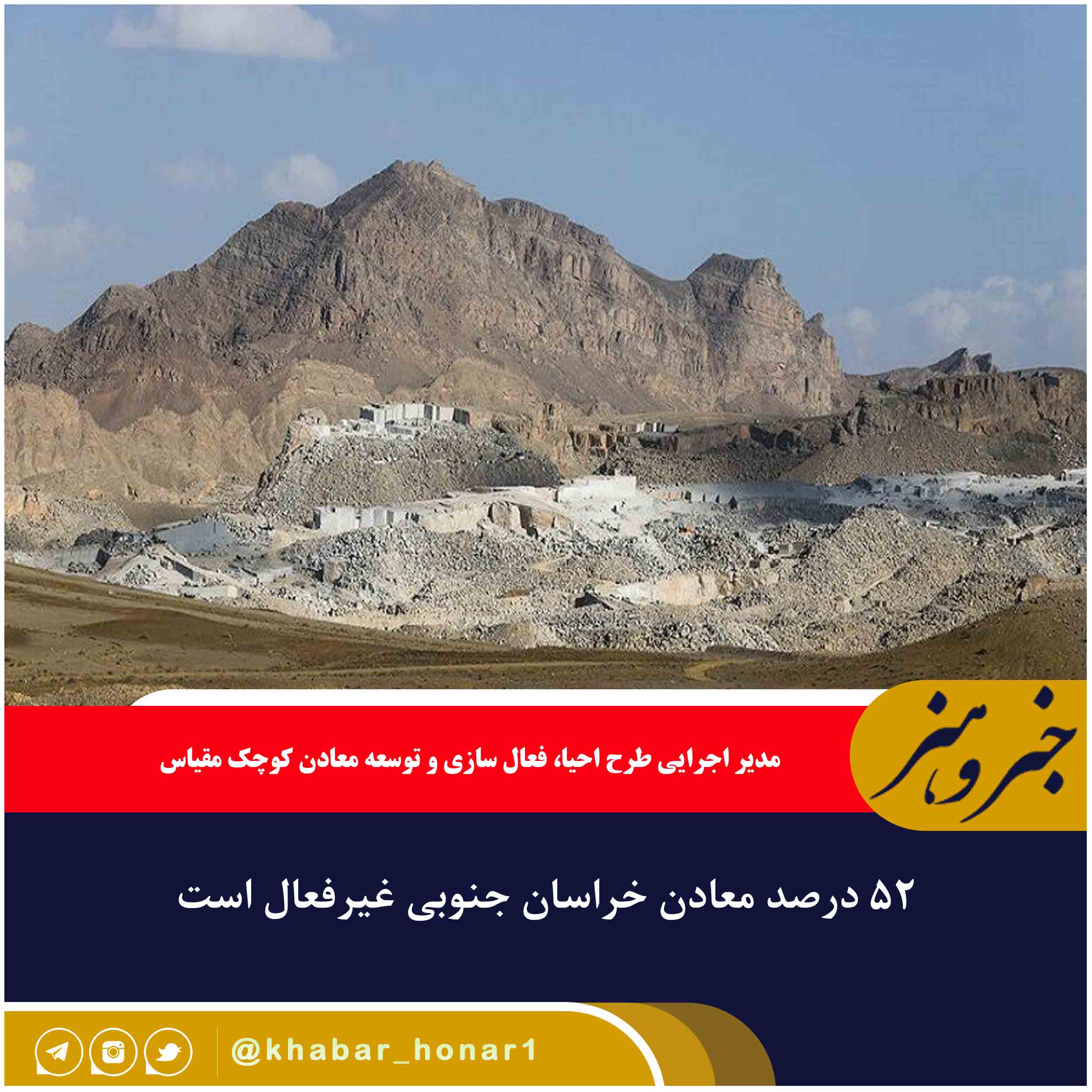 مدیر اجرایی طرح احیا، فعال سازی و توسعه معادن کوچک مقیاس گفت: براساس آخرین ارزیابی ۵۲ درصد معادن خراسان جنوبی غیر فعال است در حالی که فعالسازی این معادن بر ایجاد اشتغال در استان تاثیرگذاری مستقیم دارد.