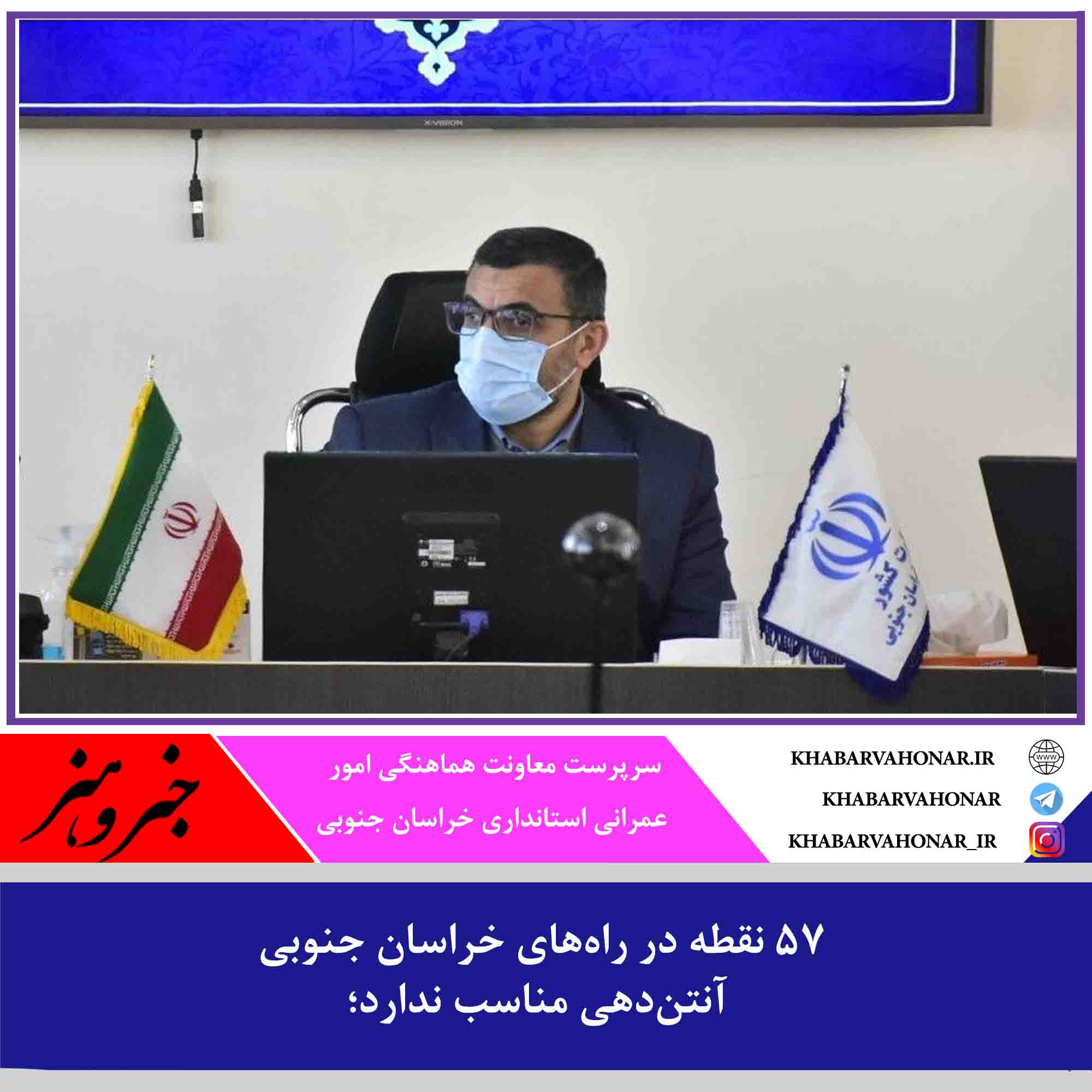 سرپرست معاونت هماهنگی امور عمرانی استانداری خراسان جنوبی گفت: براساس گزارش پلیس راه در محورهای استان ۵۷ نقطه با نبود آنتندهی مناسب تلفن همراه وجود دارد که باید پس از اولویتبندی و تامین اعتبار، مصوب شود.