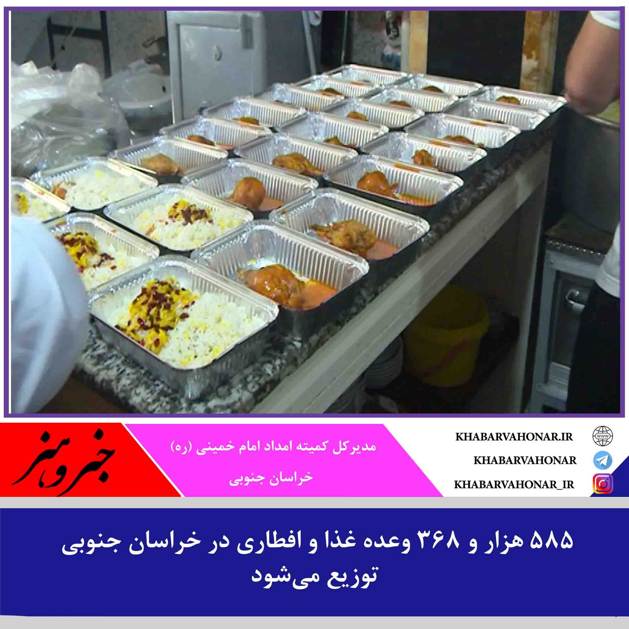 مدیرکل کمیته امداد امام خمینی (ره) خراسان جنوبی گفت: ماه رمضان امسال تهیه و توزیع ۴۶ هزار و ۳۵۰ بسته غذایی همچنین ۵۸۵ هزار و ۳۶۸ وعده غذای گرم و افطاری ساده در این استان هدفگذاری شده است.