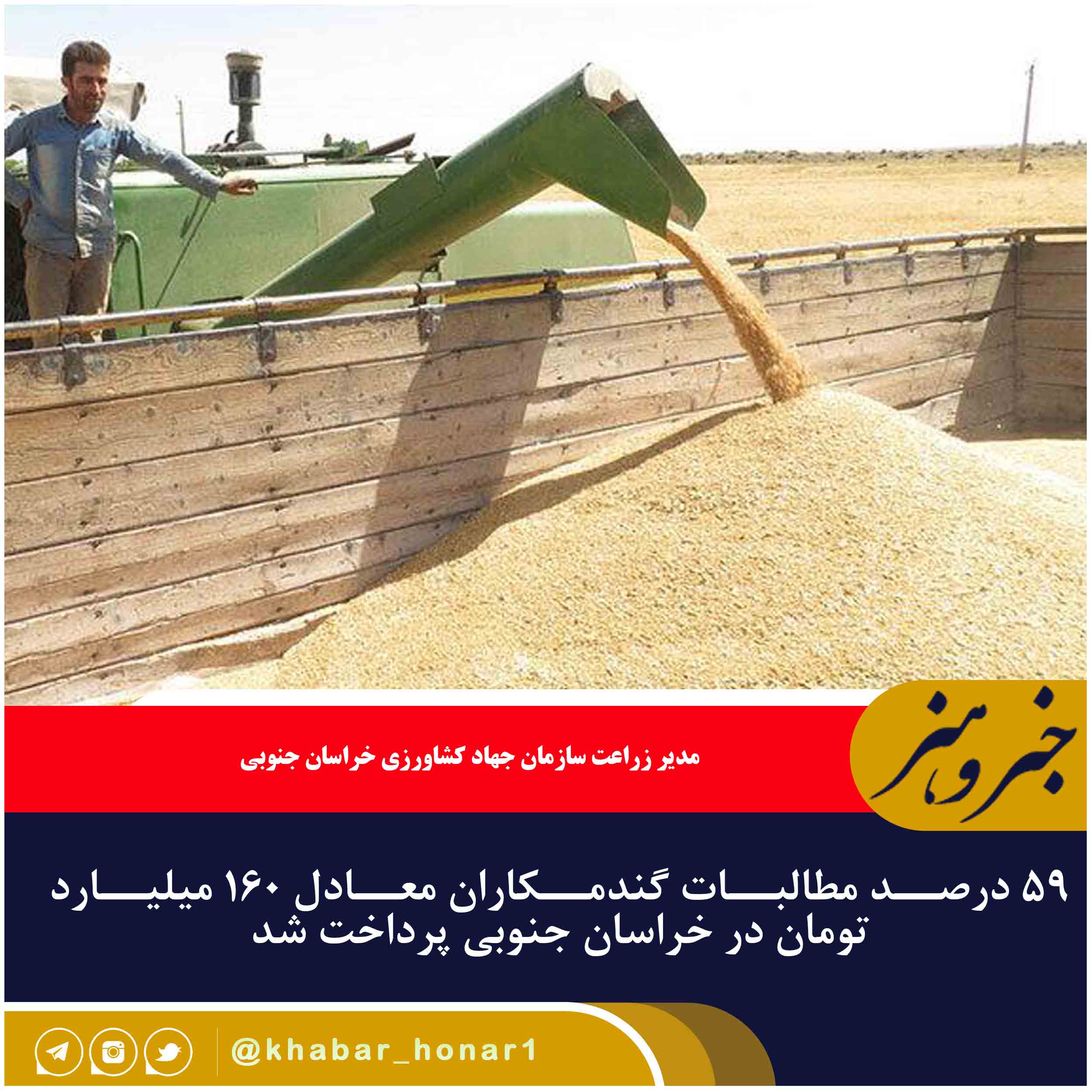 مدیر زراعت سازمان جهاد کشاورزی خراسان جنوبی گفت: تاکنون ۵۹ درصد مطالبات معادل ۱۶۰ میلیارد تومان پرداخت شده و مابقی در روزهای آینده پرداخت میشود.