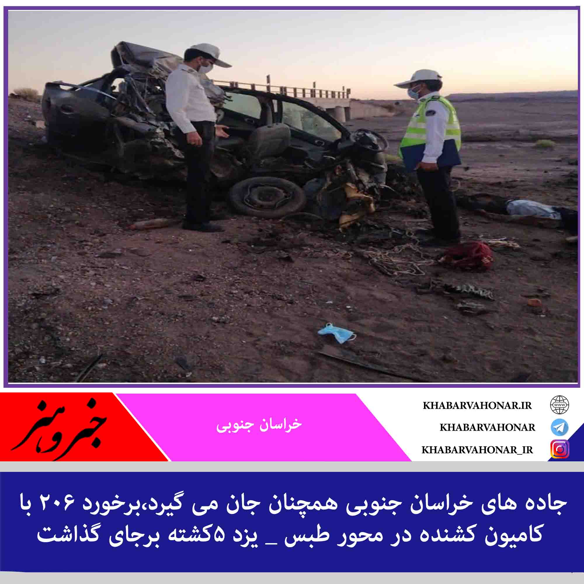 برخورد ۲۰۶ با کامیون کشنده در محور طبس _ یزد ۵کشته برجای گذاشت.