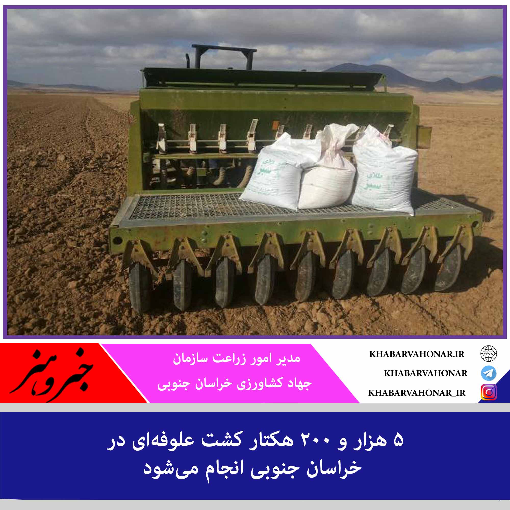 مدیر امور زراعت سازمان جهاد کشاورزی خراسان جنوبی از آغاز کشت پاییزه در این استان خبر داد و گفت: کشت پنج هزار و ۲۰۰ هکتار محصول قصیل جو (کشتهای علوفهای پاییزه) از برنامههای استان در سال زراعی جاری است.