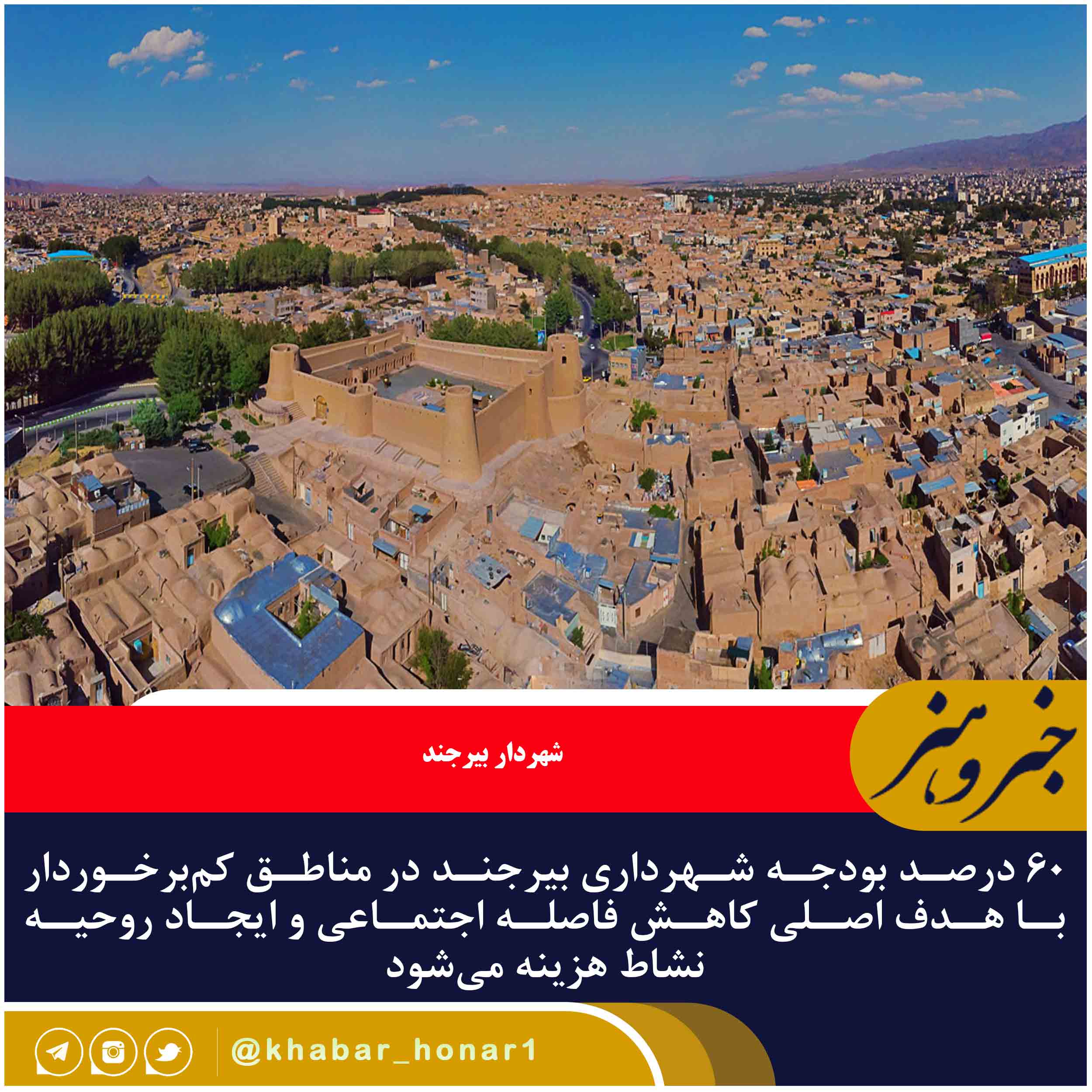 شهردار بیرجند گفت: ۶۰ درصد بودجه این شهرداری به سمت مناطق کمبرخوردار سوق داده شده که هدف اصلی کاهش فاصله اجتماعی و ایجاد روحیه نشاط است.