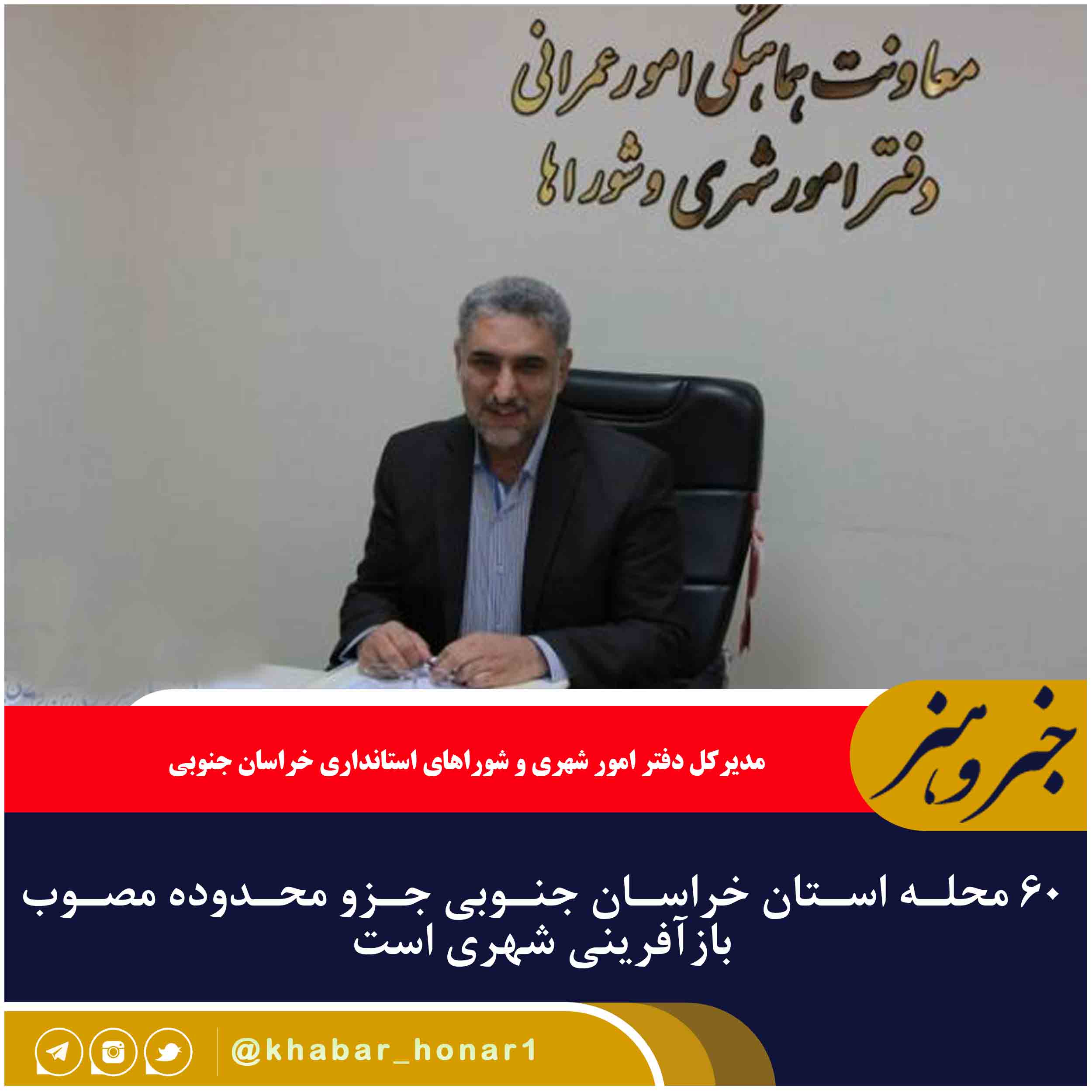 مدیرکل دفتر امور شهری و شوراهای استانداری خراسان جنوبی گفت: ۶۰ محله استان به مساحت بیش از هزار و ۷۳ هکتار یعنی ۳۴ درصد جمعیت شهری خراسان جنوبی جزو محدوده مصوب بازآفرینی شهری هستند.