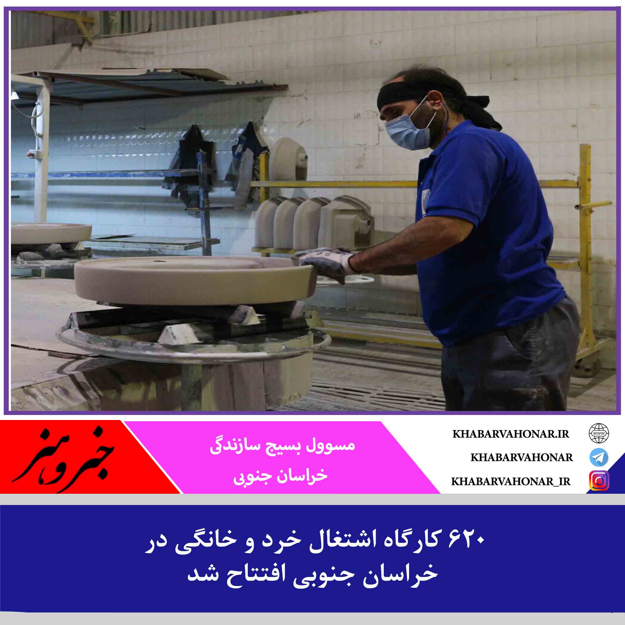۶۲۰ کارگاه اشتغالزایی خرد و خانگی روز چهارشنبه با حضور رییس سازمان بسیج سازندگی کشور در خراسان جنوبی افتتاح شد.