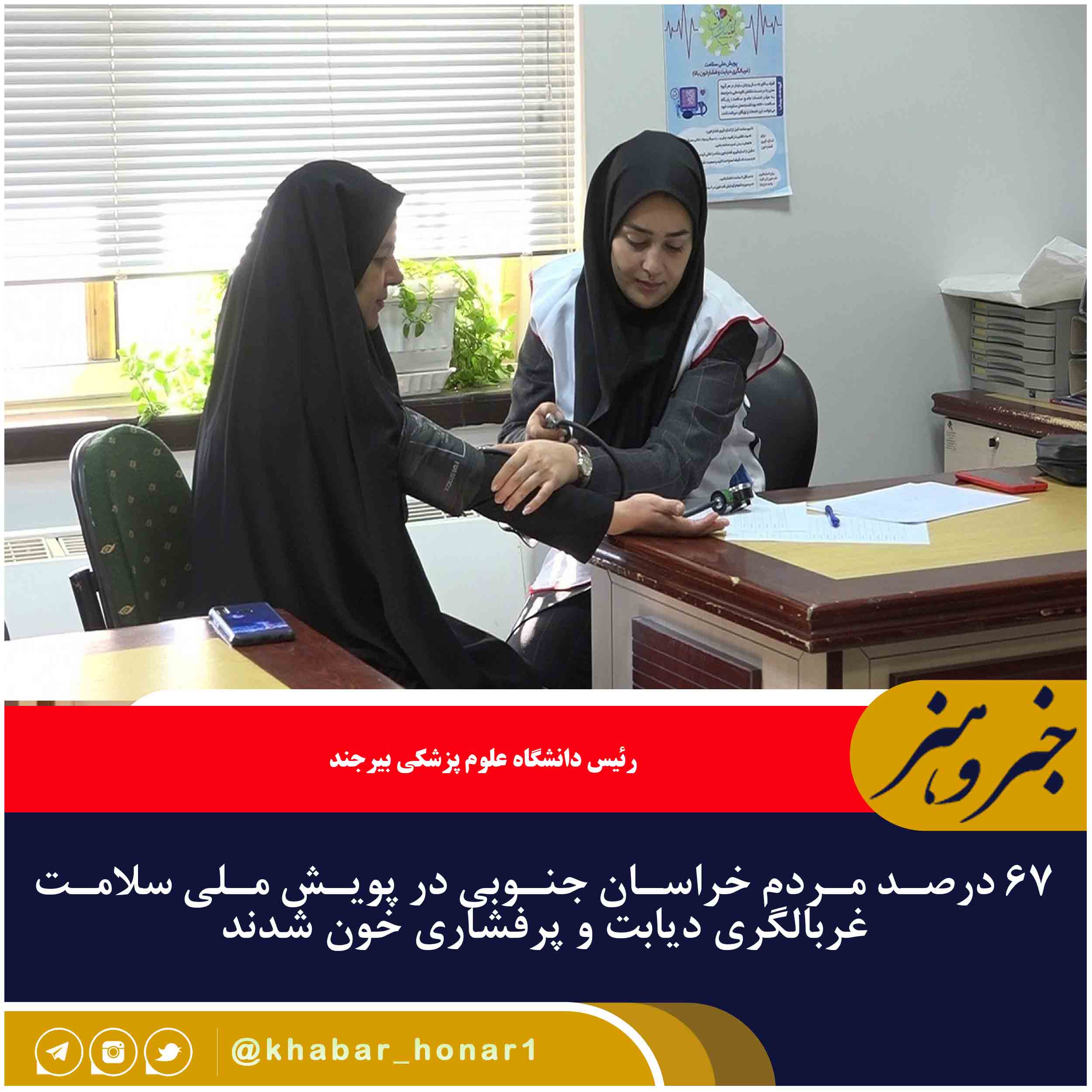 رئیس دانشگاه علوم پزشکی بیرجند گفت: پویش ملی سلامت از ۲۰ آبان امسال آغاز شد و تاکنون ۶۷.۱ درصد جمعیت هدف استان خراسان جنوبی در این طرح غربالگری شدهاند.