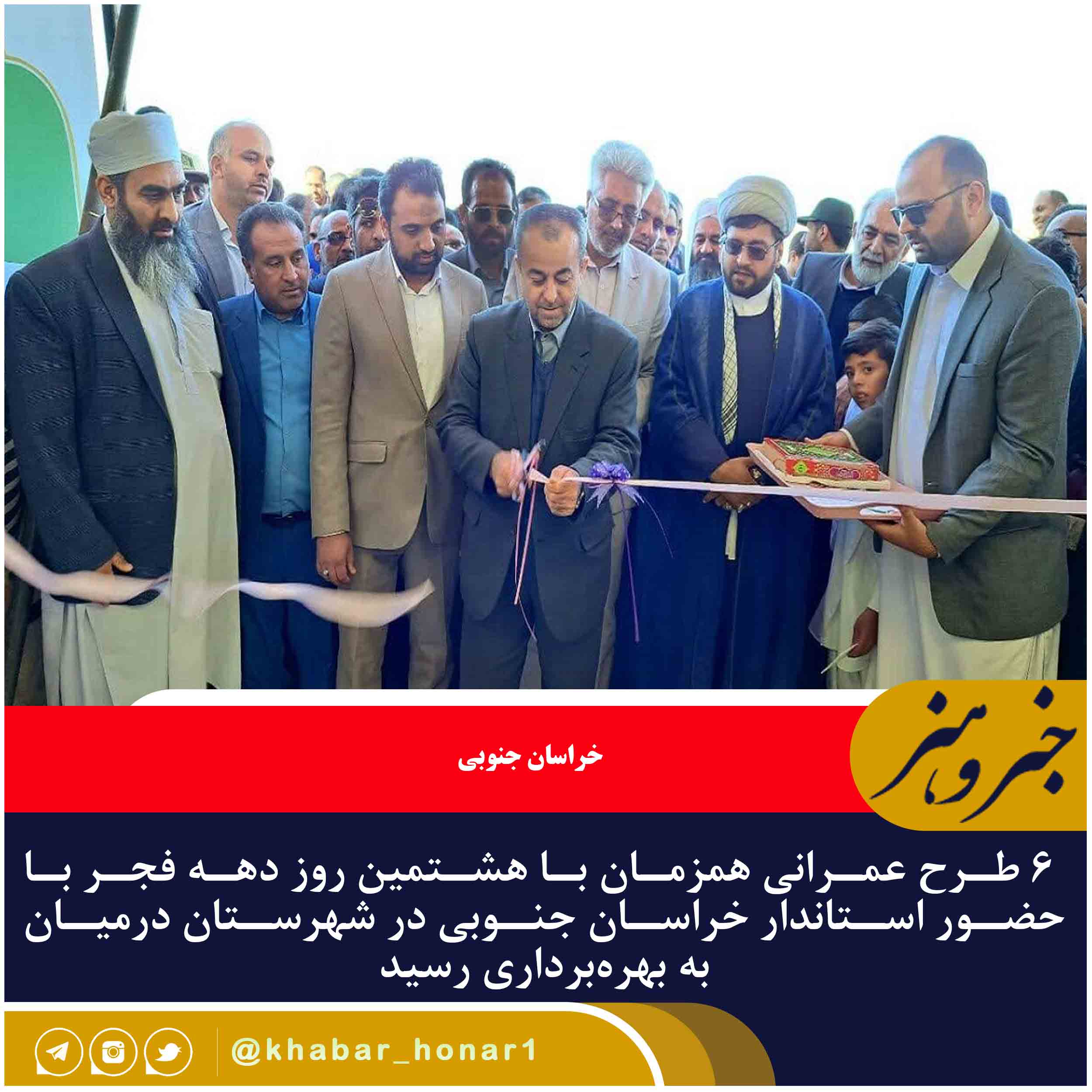 ۶ طرح عمرانی همزمان با هشتمین روز دهه فجر با حضور استاندار خراسان جنوبی در شهرستان درمیان به بهرهبرداری رسید.