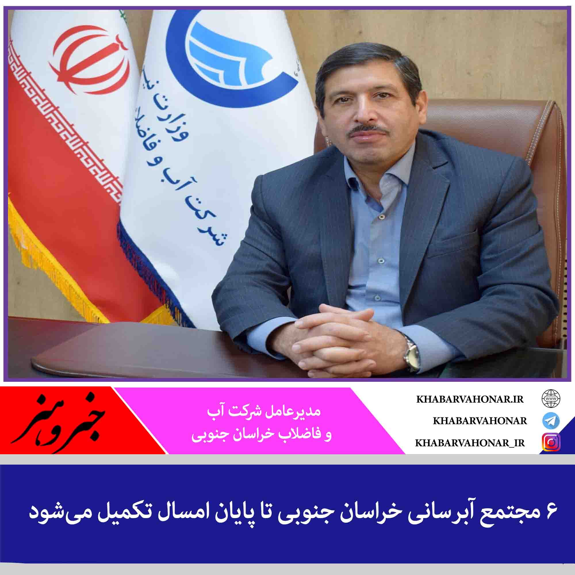– مدیرعامل شرکت آب و فاضلاب خراسان جنوبی گفت: در حال حاضر ۳۳ مجتمع آبرسانی روستایی در استان در دست اجرا است که ۶ مجتمع تا پایان امسال تکمیل میشود.