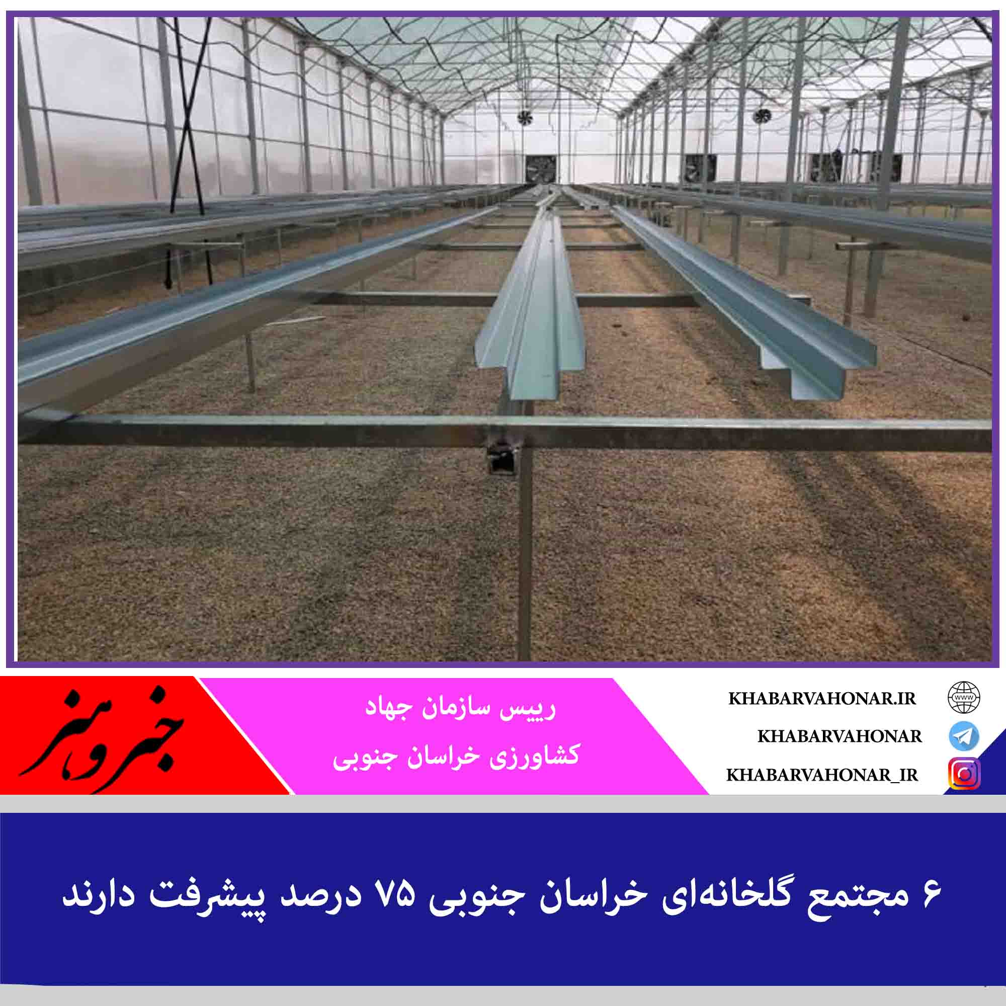 رییس سازمان جهاد کشاورزی خراسان جنوبی گفت: تاکنون ۶ مجتمع گلخانهای در شهرستانهای بیرجند، خوسف، سربیشه، سرایان، زیرکوه و نهبندان جانمایی شده است که ۷۵ درصد پیشرفت فیزیکی دارند.