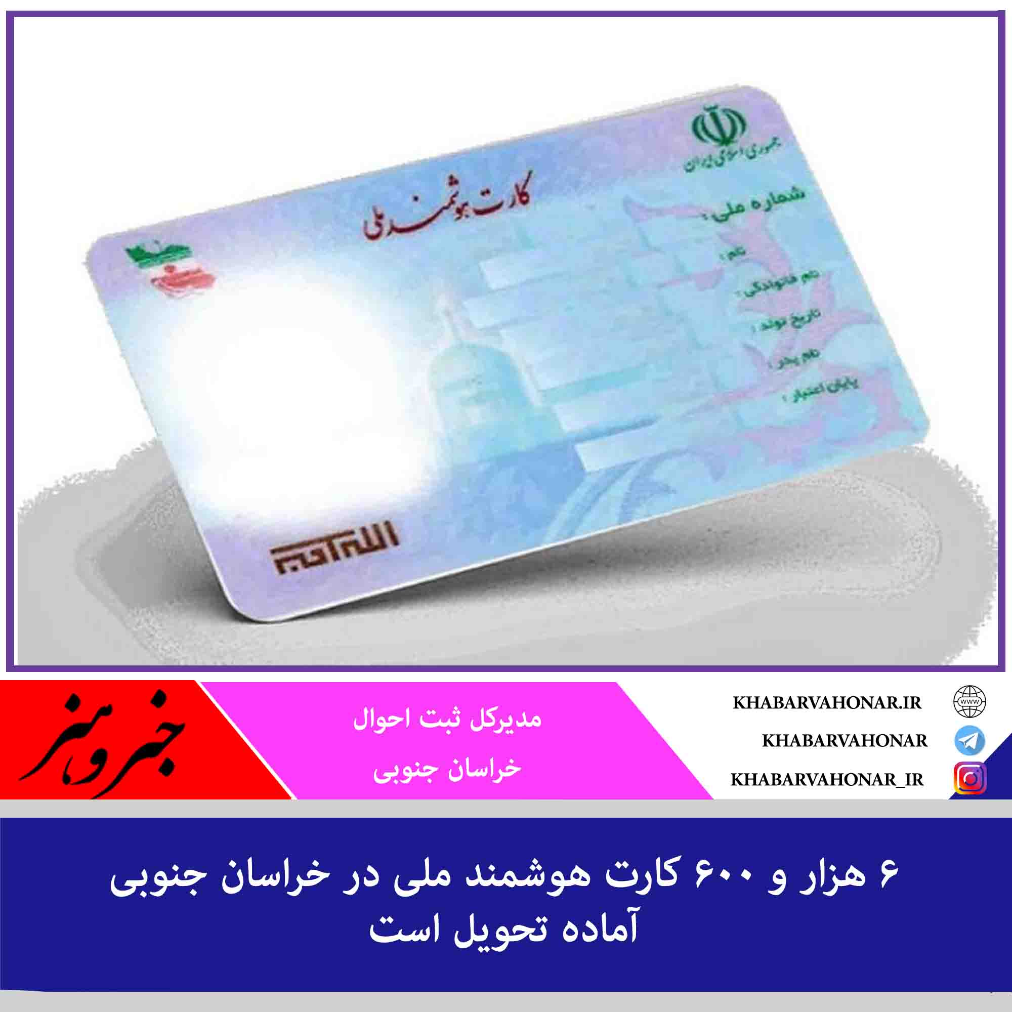 مدیرکل ثبت احوال خراسان جنوبی گفت: ۶ هزار و ۶۰۰ کارت هوشمند ملی در استان صادر شده و آماده تحویل به متقاضیان است.