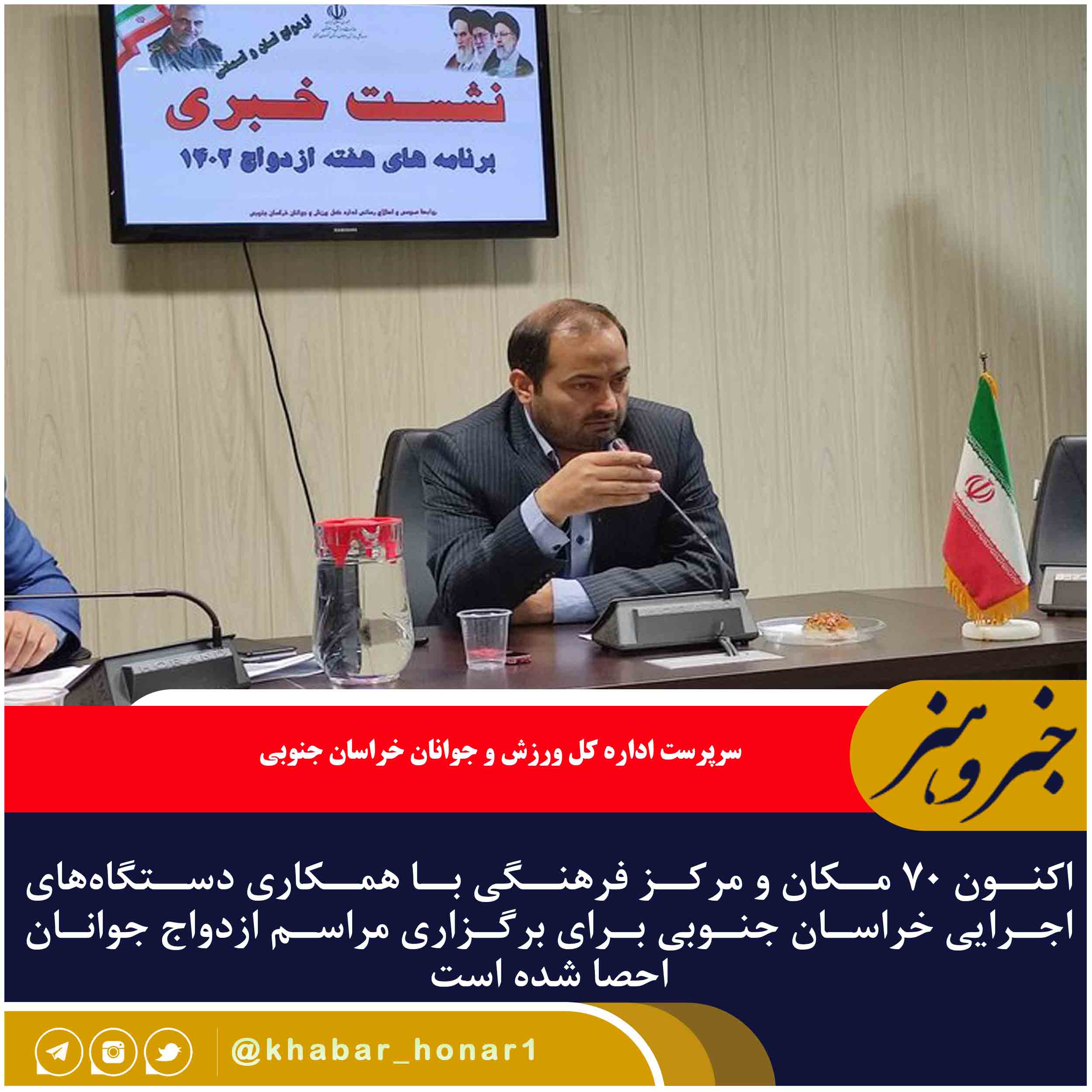 سرپرست اداره کل ورزش و جوانان خراسان جنوبی گفت: تاکنون ۷۰ مکان و مرکز فرهنگی با همکاری دستگاههای اجرایی استان برای برگزاری مراسم ازدواج جوانان احصا شده است که بعد از رفع نواقص در پرتال فرمانداریها معرفی میشوند.