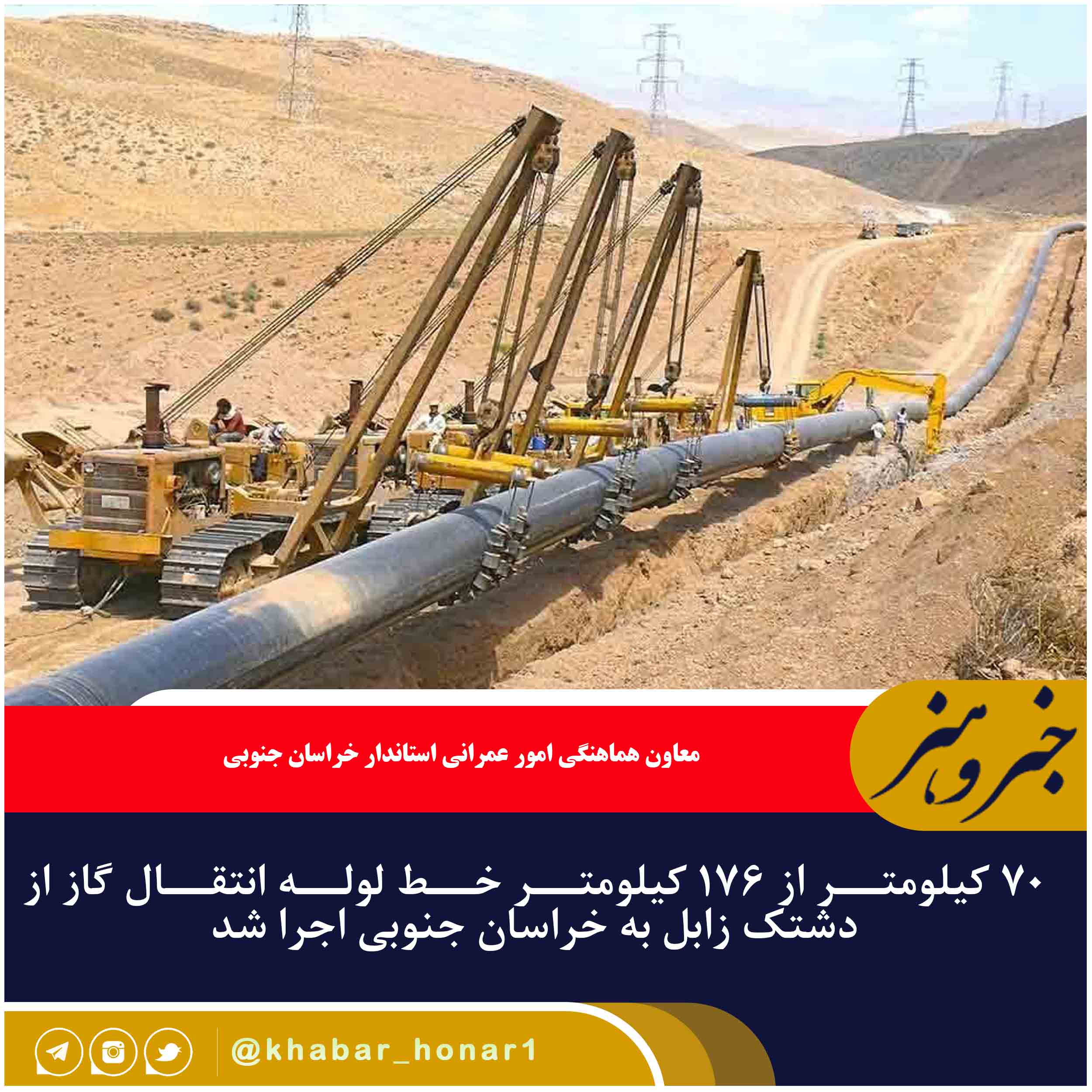 علیرضا عباسزاده در جلسه بررسی آخرین وضعیت طرح انتقال گاز از دشتک زابل به نهبندان که خراسان جنوبی را از طریق سیستان و بلوچستان به خط سراسری متصل میکند، افزود: ۷۰ کیلومتر از ۱۷۶ کیلومتر خط لوله انتقال گاز از دشتک زابل اجرا شد.