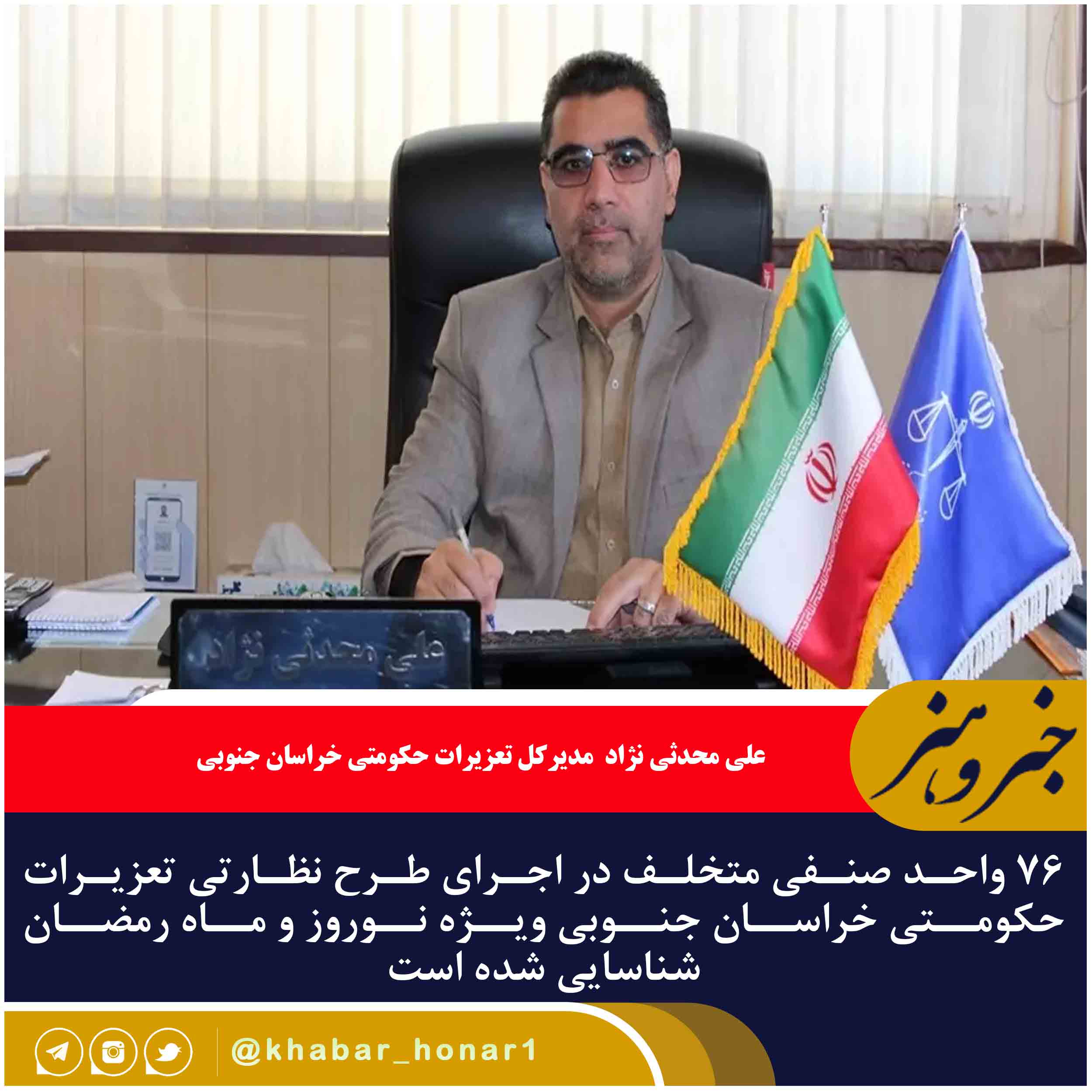 علی محدثی نژاد مدیرکل تعزیرات حکومتی خراسان جنوبی گفت: ۷۶ واحد صنفی متخلف در اجرای طرح نظارتی تعزیرات حکومتی خراسان جنوبی ویژه نوروز و ماه رمضان شناسایی شده است.