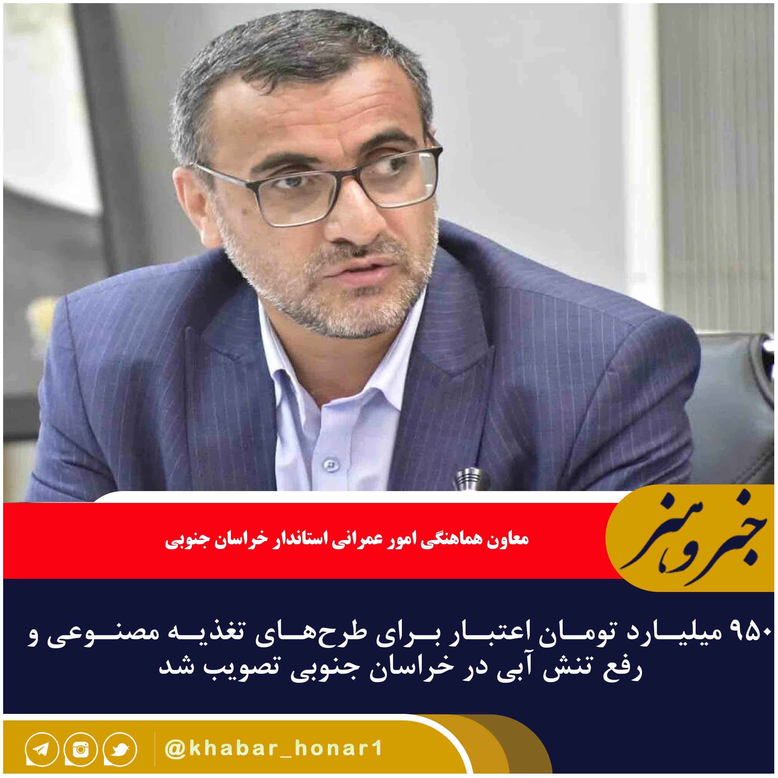 معاون هماهنگی امور عمرانی استاندار خراسان جنوبی اعلام کرد: در چارچوب مصوبات سفر دوم رئیس جمهور به خراسان جنوبی ۹۵۰ میلیارد تومان اعتبار برای طرح‌های تغذیه مصنوعی و رفع تنش آبی در استان تصویب شد.