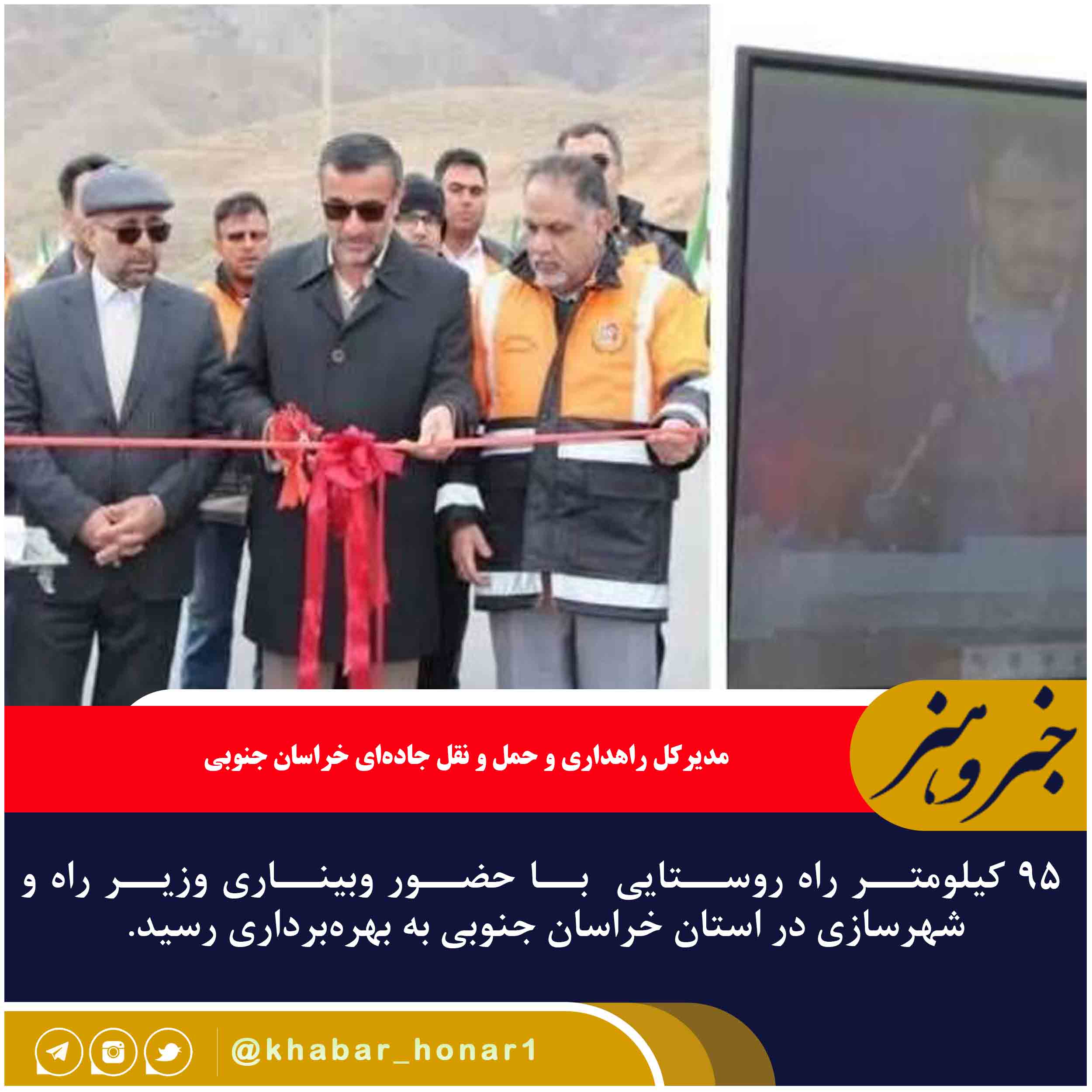 ۹۵ کیلومتر راه روستایی در هفتمین روز دهه فجر با حضور وبیناری وزیر راه و شهرسازی در استان خراسان جنوبی به بهرهبرداری رسید.