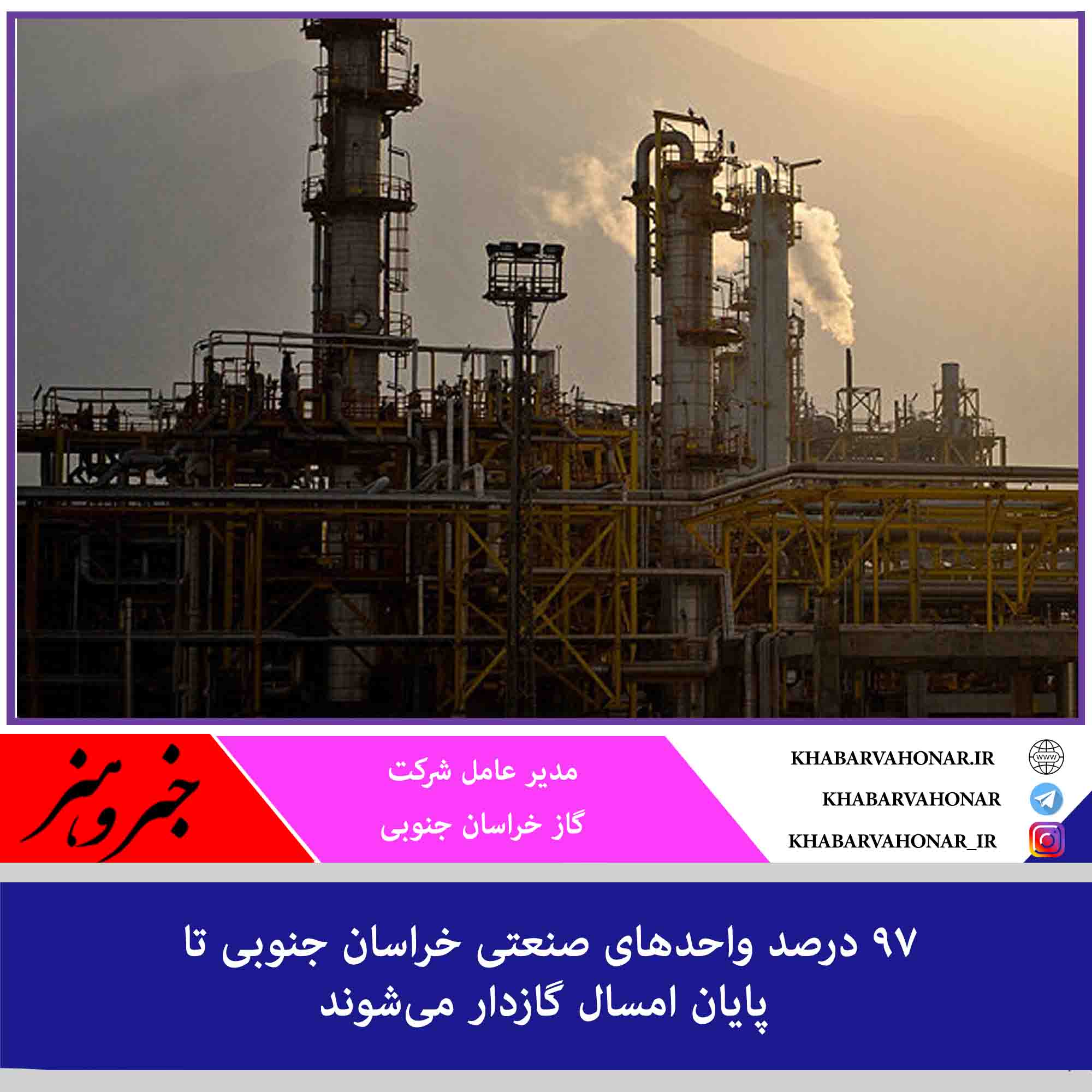 مدیر عامل شرکت گاز خراسان جنوبی اظهار کرد: ۹۷ درصد واحدهای صنعتی خراسان جنوبی تا پایان امسال به شبکه گاز طبیعی متصل میشوند.