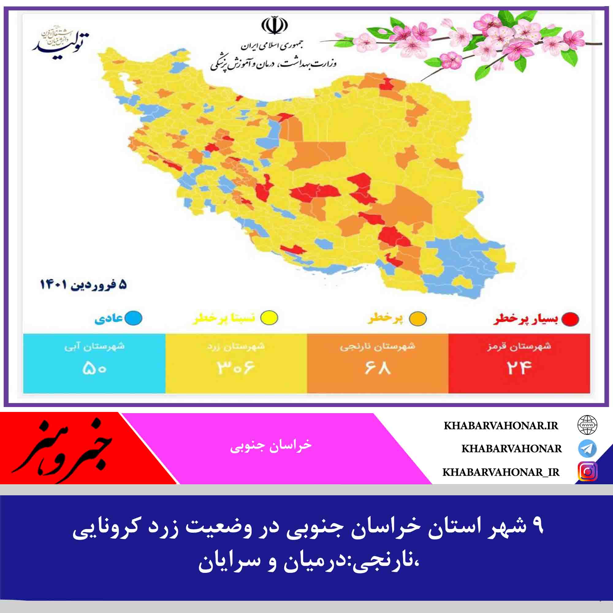 ?زرد: بیرجند، بشرویه، خوسف، زیرکوه، سربیشه، فردوس، قائنات، طبس و نهبندان