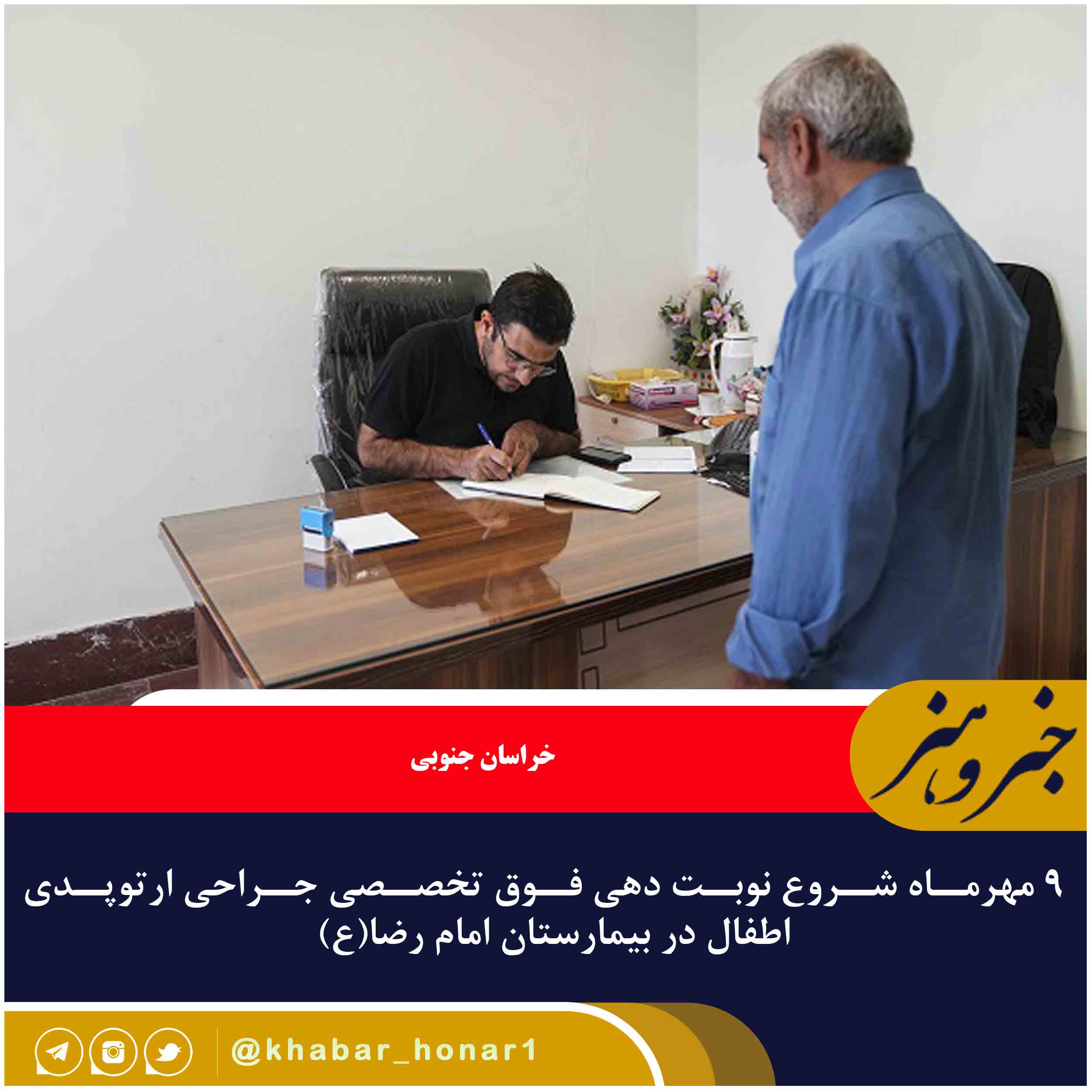 ۹ مهرماه شروع نوبت دهی فوق تخصصی جراحی ارتوپدی اطفال در بیمارستان امام رضا(ع) ب