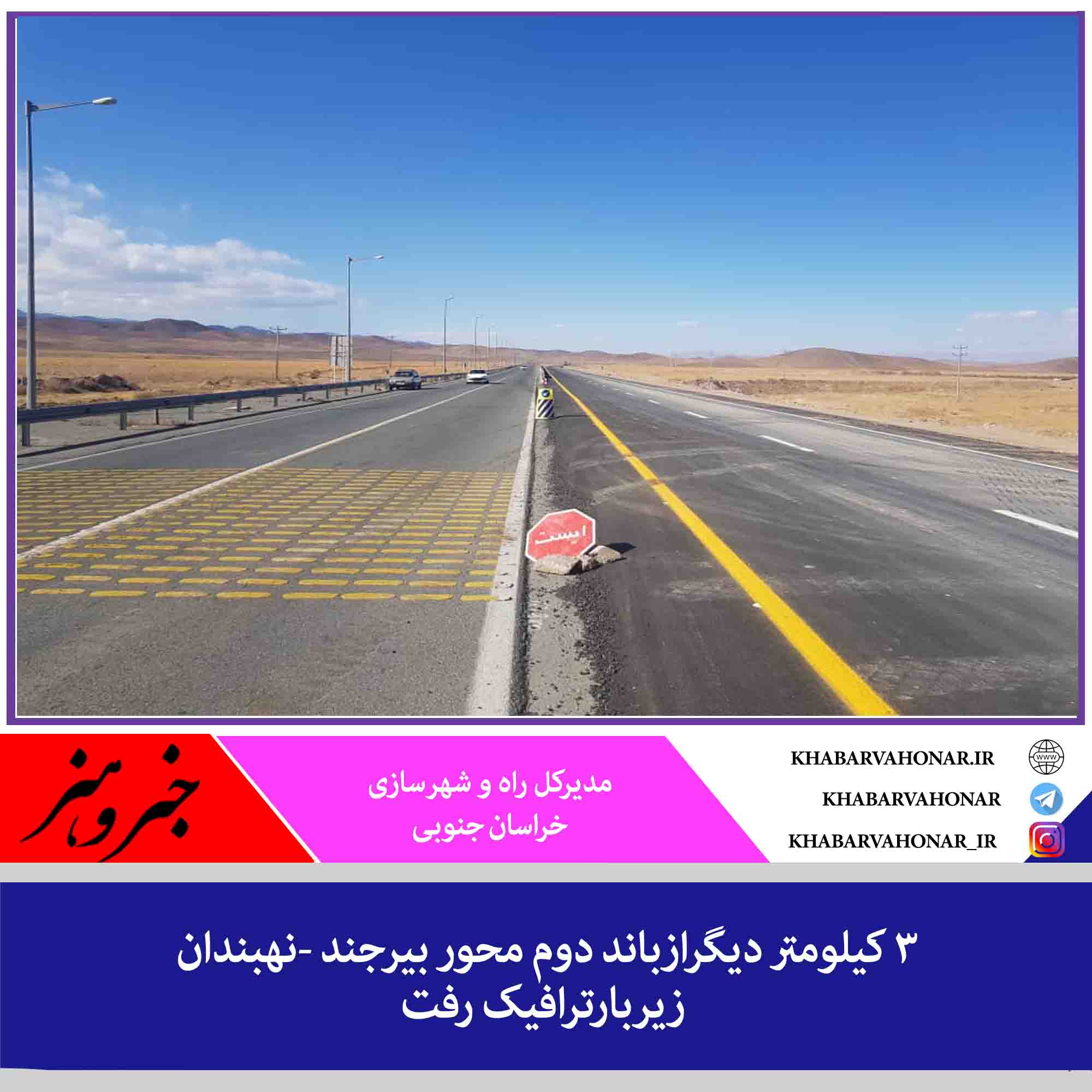 ۳ کیلومتردیگر از باند دوم محور بیرجند- نهبندان حدفاصل روستای پدران باهمکاری پلیس راه و راهداری و حمل ونقل جاده ای زیربارترافیک رفت.
