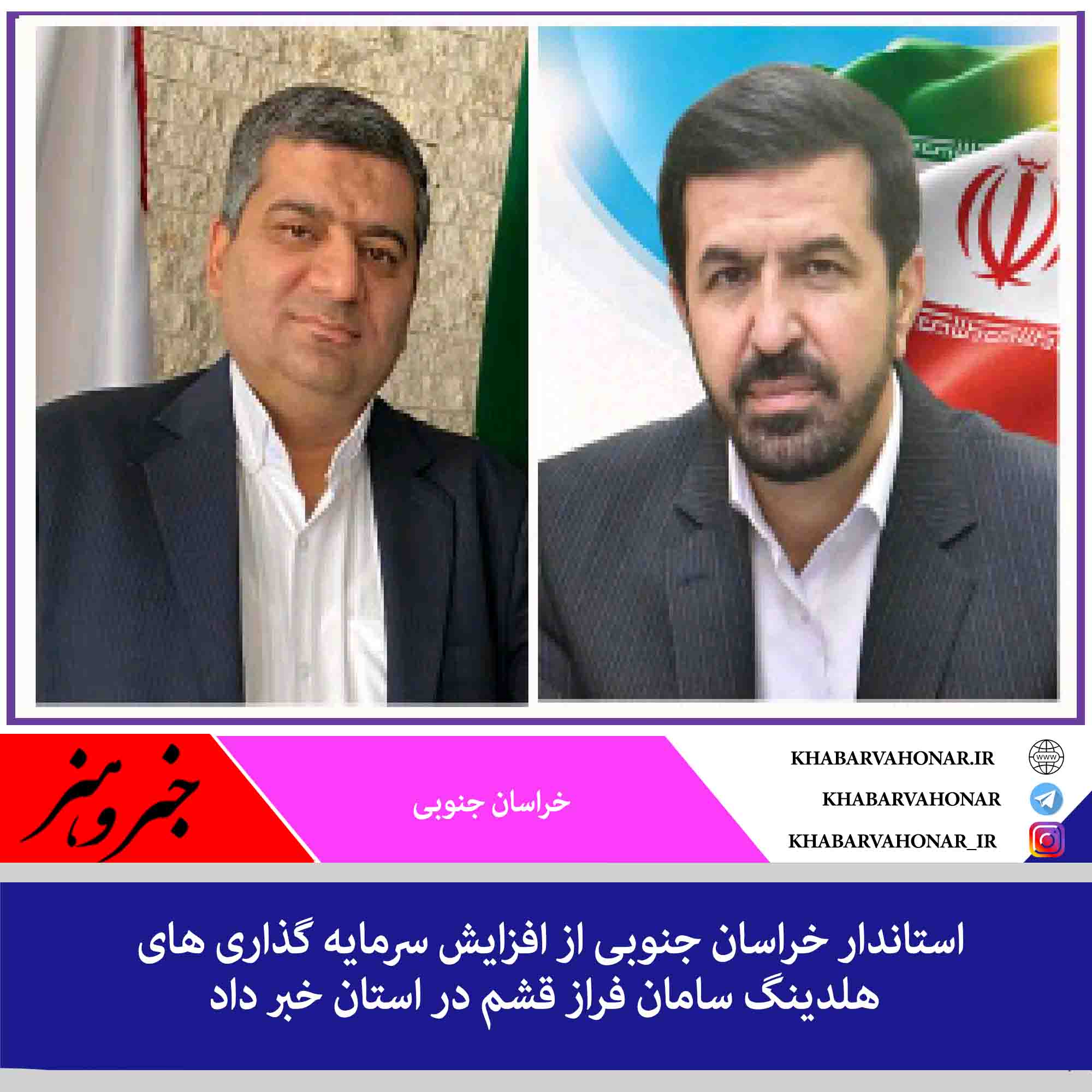 ?استاندار خراسان جنوبی از افزایش سرمایه گذاری های هلدینگ سامان فراز قشم در استان خبر داد.