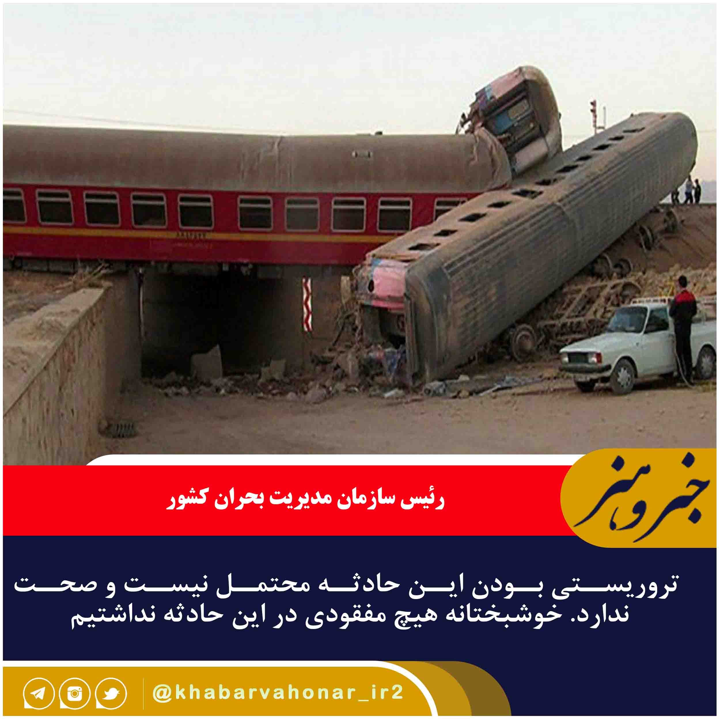 رئیس سازمان مدیریت بحران کشور افزود : تروریستی بودن این حادثه محتمل نیست و صحت ندارد. خوشبختانه هیچ مفقودی در این حادثه نداشتیم.