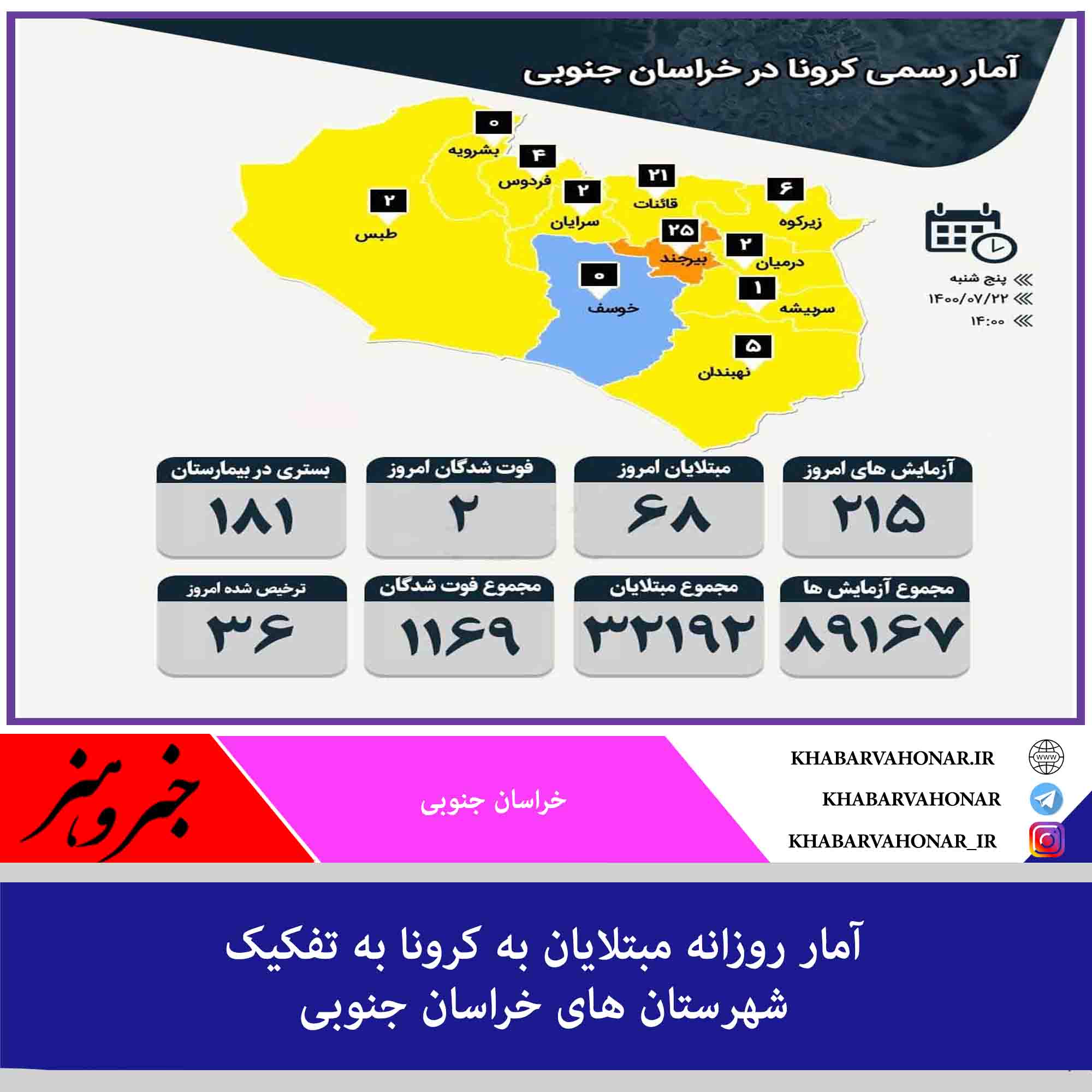 ?آمار روزانه مبتلایان به کرونا به تفکیک شهرستان های خراسان جنوبی
