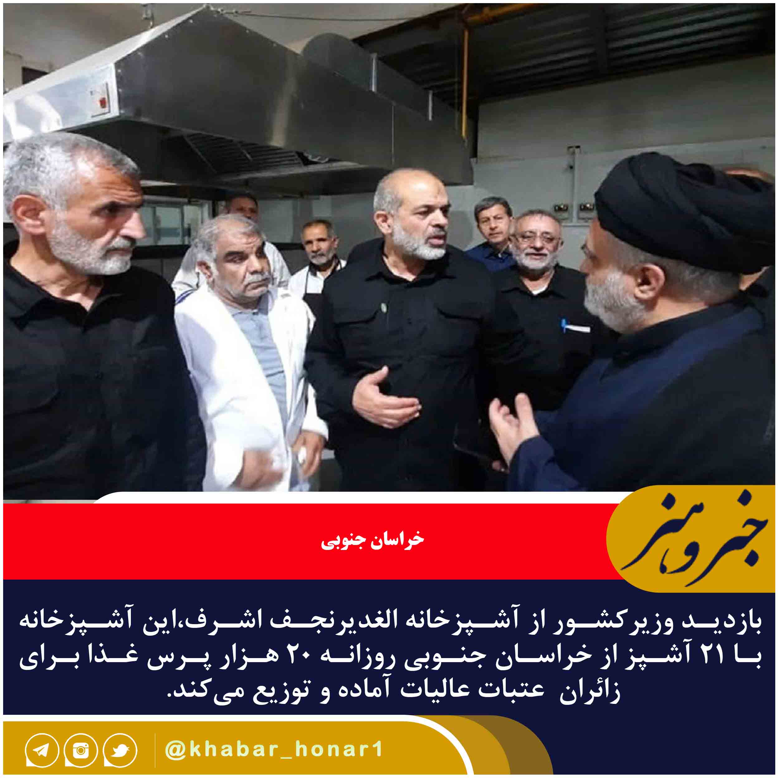 در این بازدید که سید مجید میراحمدی رئیس ستاد مرکزی اربعین و مهدی جمالی نژاد معاون عمران و توسعه امور شهری و روستایی وزارت کشور احمد وحیدی را همراهی میکردند، او از بخشهای مختلف این آشپرخانه بازدید و از نزدیک در جریان روند فعالیت آن و طبخ و توزیع غذا برای زائران عتبات مقدسه قرار گرفت.