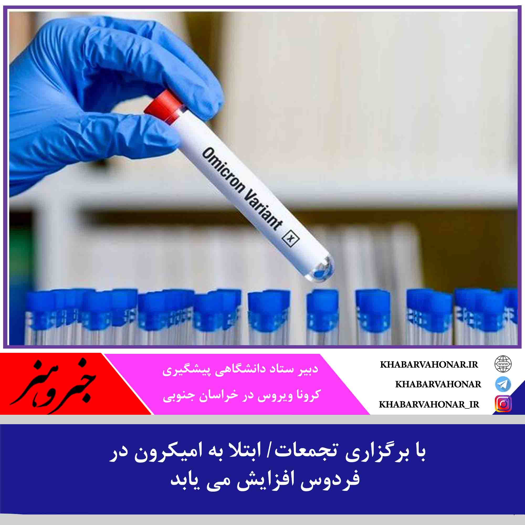 ?شریف زاده دبیر ستاد دانشگاهی پیشگیری و مدیریت کرونا ویروس در خراسان جنوبی: در یک هفته گذشته موارد ابتلا به ویروس کرونا در شهرستان فردوس روند افزایشی داشته و بررسیها نشان میدهد تجمعات مختلفی در این مدت در این شهرستان برگزار و باعث کاهش حساسیت مردم در مقابله با این ویروس شده