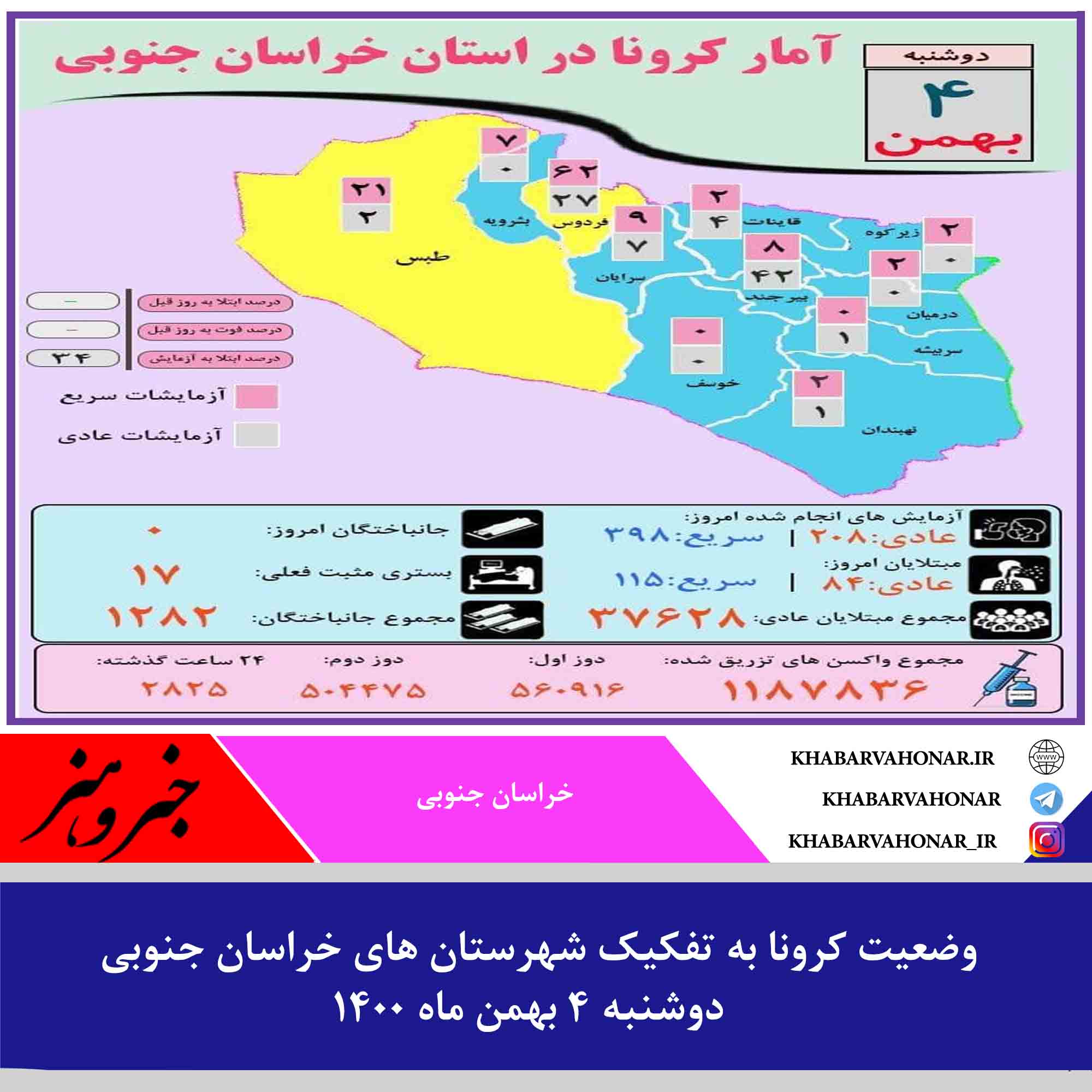 ?وضعیت کرونا به تفکیک شهرستان های خراسان جنوبی