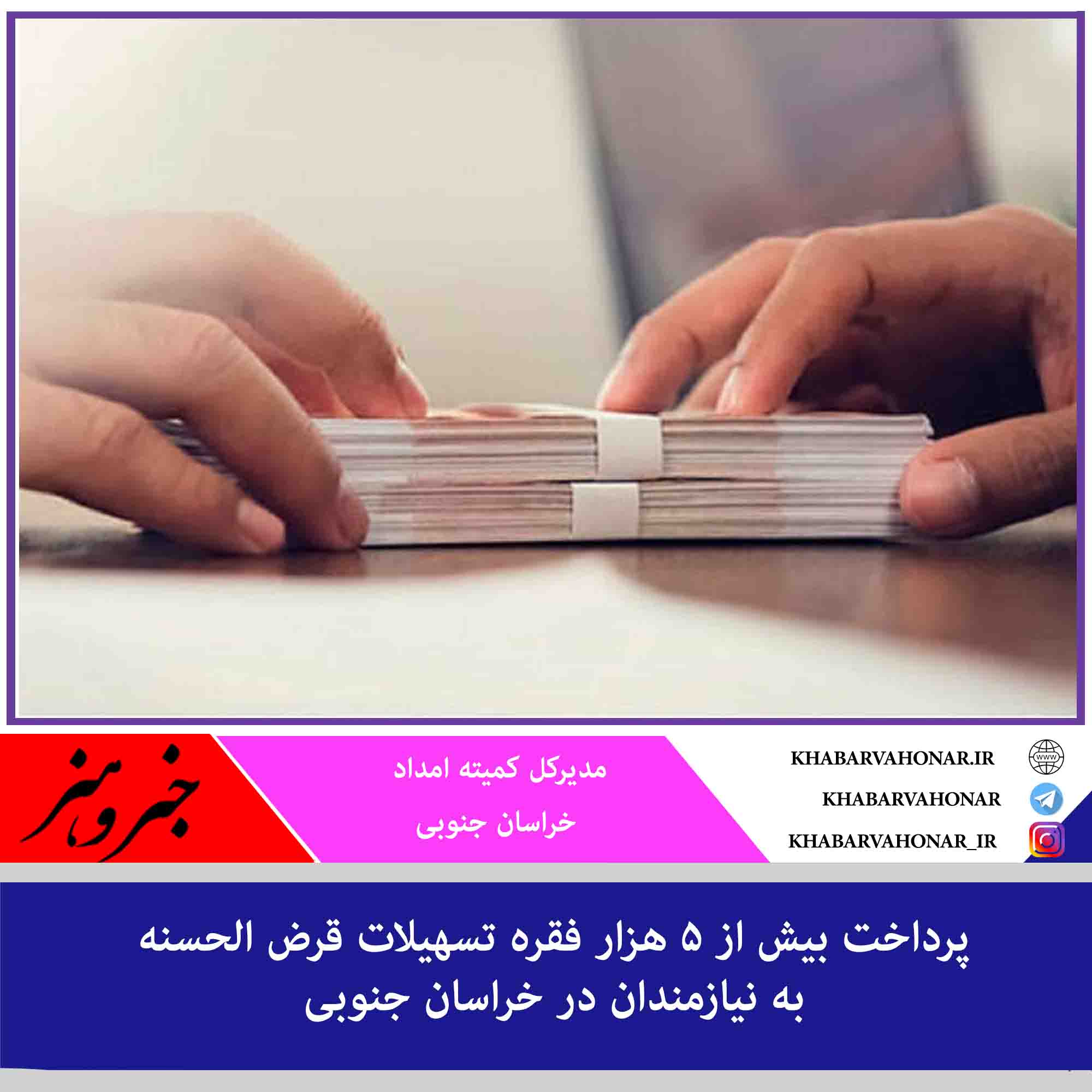 ?مدیرکل کمیته امداد خراسان جنوبی از پرداخت بیش از ۵ هزار فقره تسهیلات قرض الحسنه به نیازمندان تحت پوشش این نهاد در استان خبر داد.