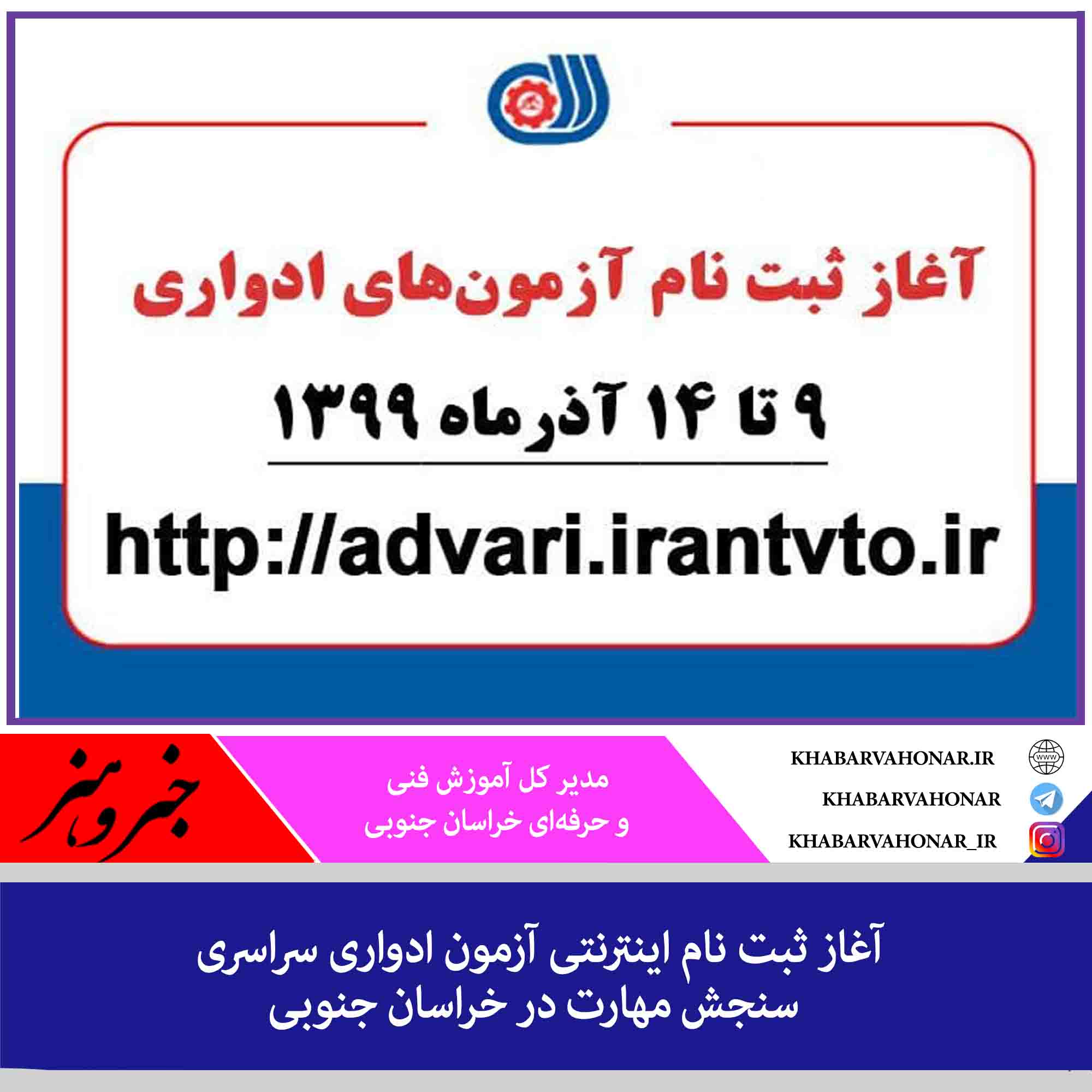 ?ثبت نام اینترنتی آزمونهای ادواری سنجش مهارت، همزمان با سراسر کشور از امروز ۹ آذر در خراسان جنوبی آغاز شد.