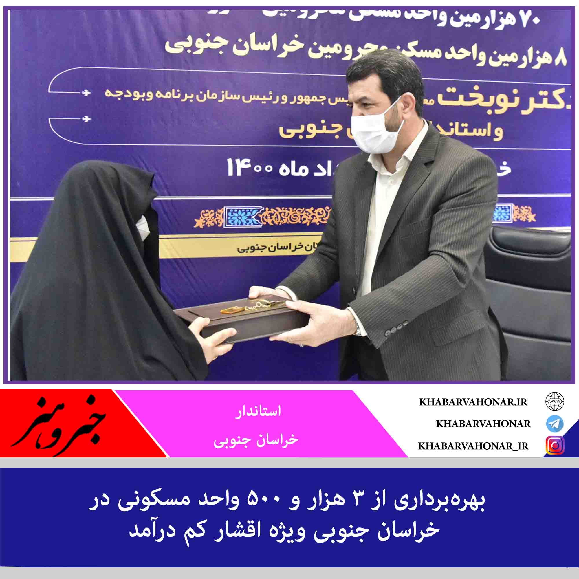 ?۳۵۰۰ واحد مسکونی ویژهی اقشار کم درآمد امروز همزمان با سراسر کشور و به صورت ویدئوکنفرانسی در خراسان جنوبی به بهره برداری رسید.