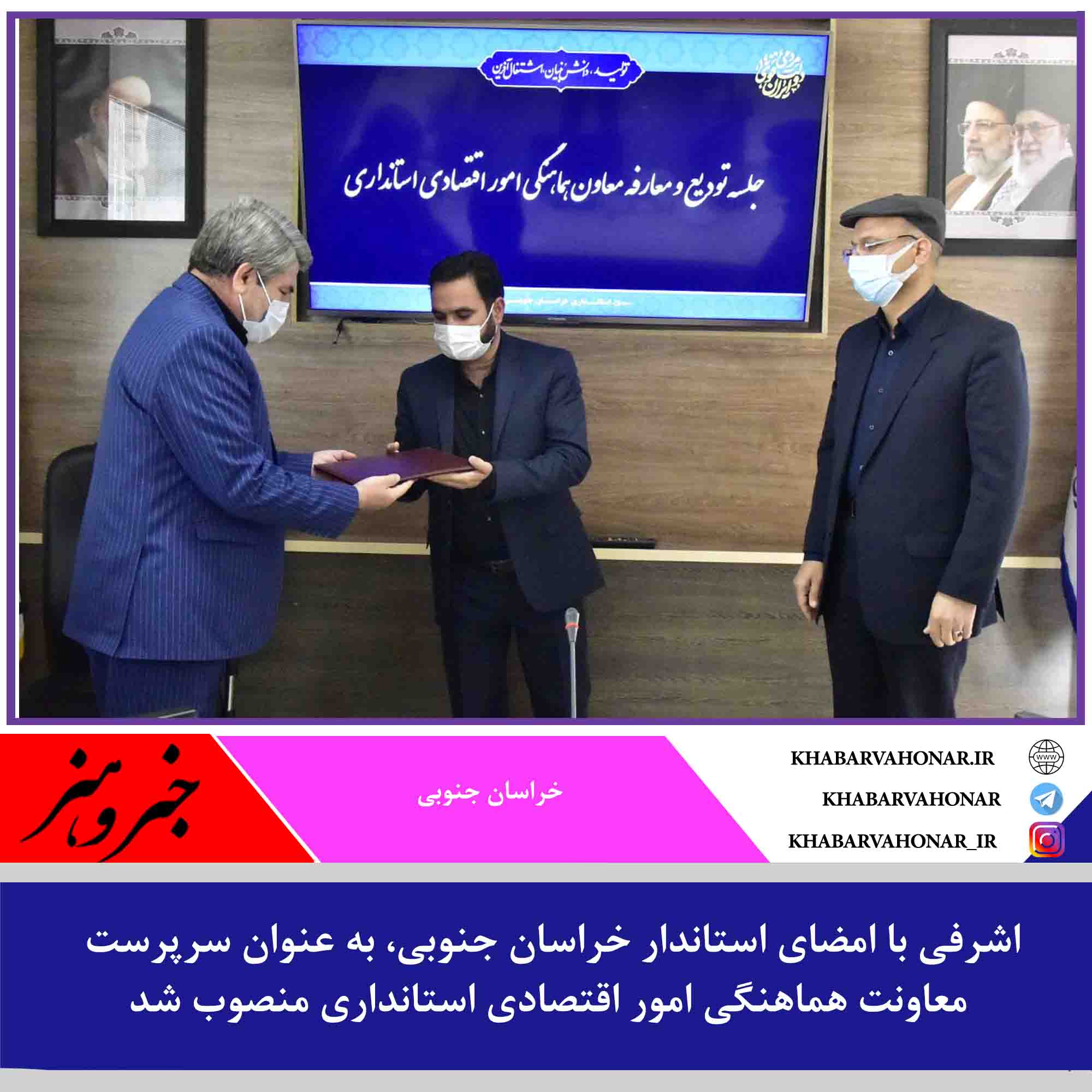 ?اشرفی با امضای استاندار خراسان جنوبی، به عنوان سرپرست معاونت هماهنگی امور اقتصادی استانداری منصوب شد.