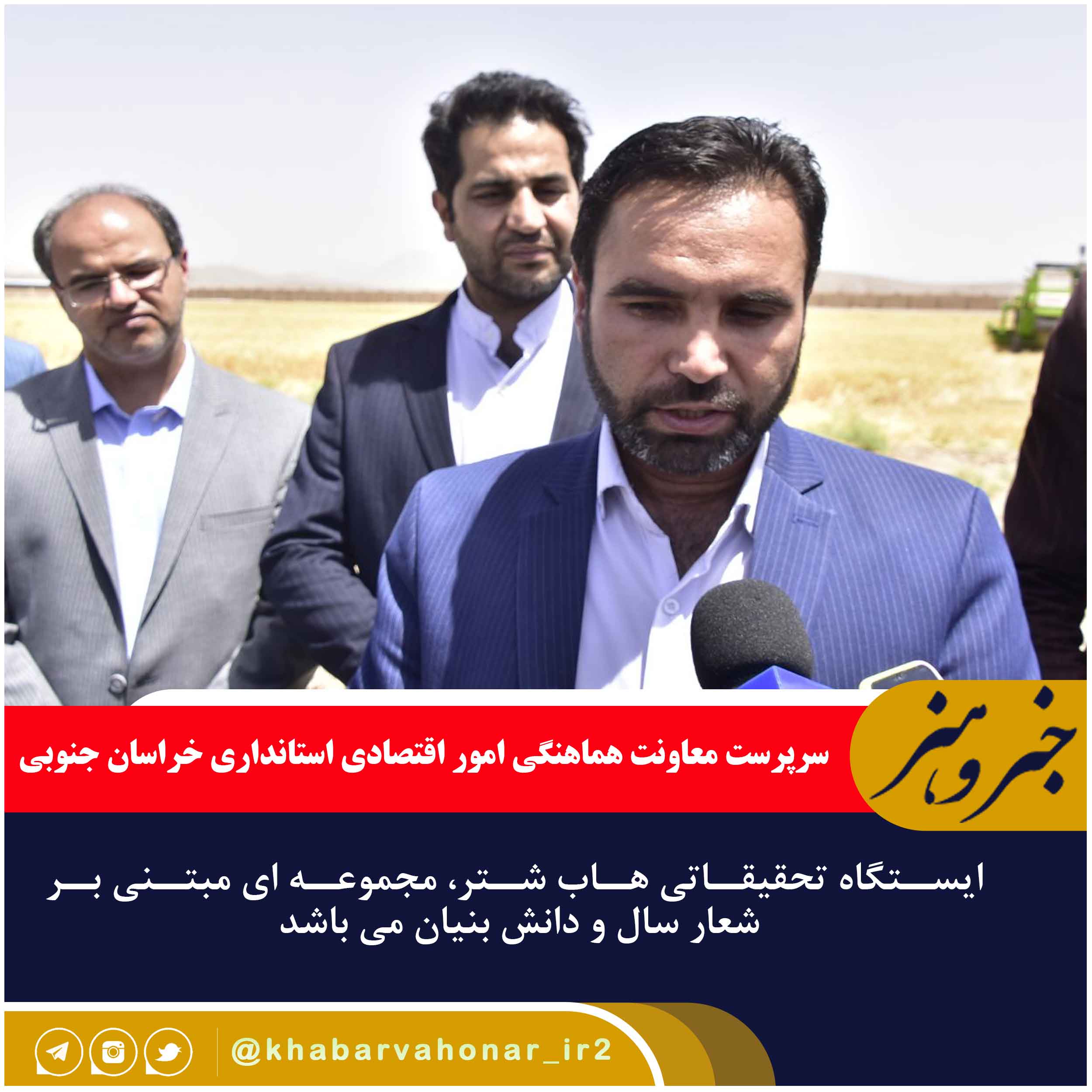 ?سرپرست معاونت هماهنگی امور اقتصادی استانداری خراسان جنوبی گفت: ایستگاه تحقیقاتی هاب شتر، مجموعه ای مبتنی بر شعار سال و دانش بنیان می باشد.