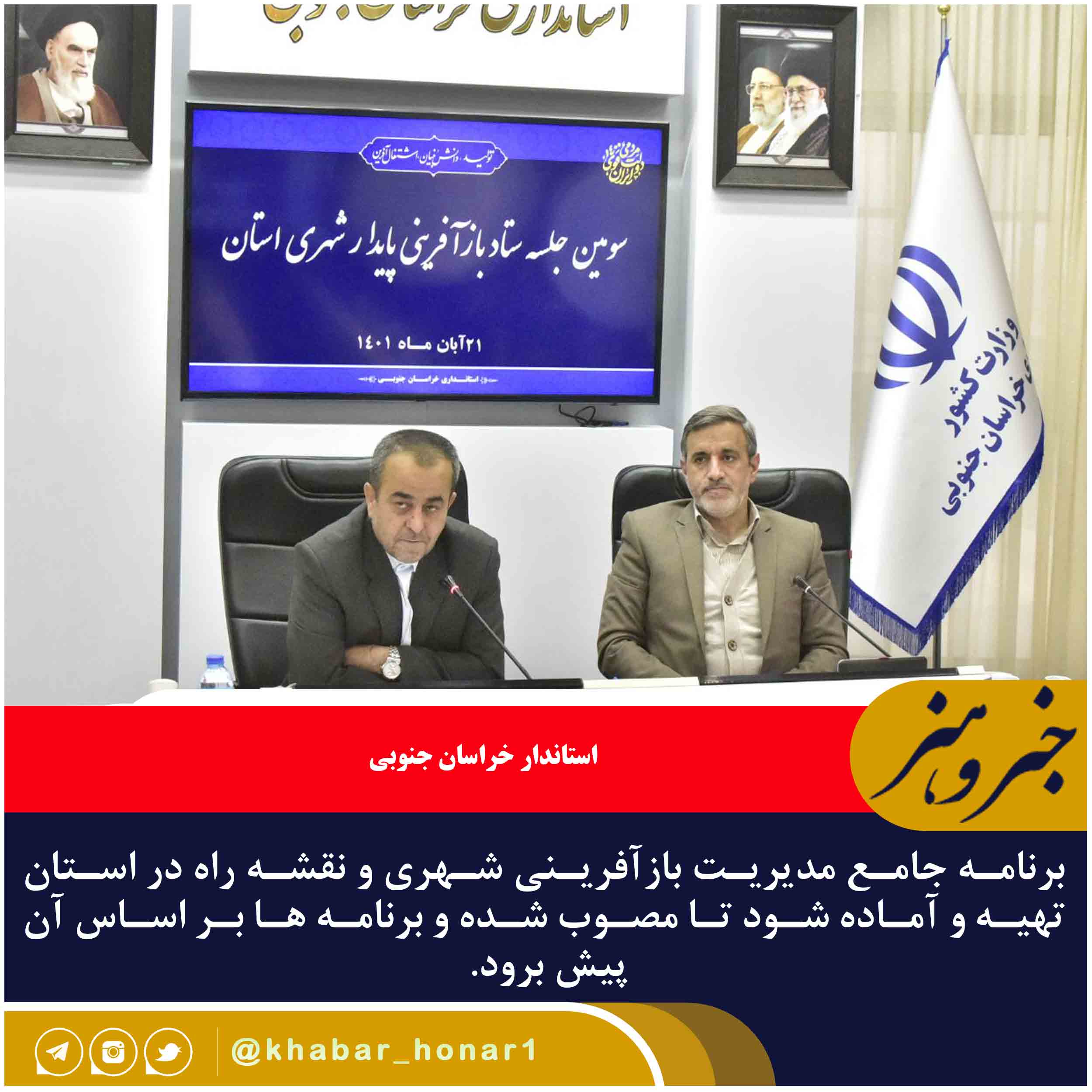 ?استاندار خراسان جنوبی گفت: برنامه جامع مدیریت بازآفرینی شهری و نقشه راه در استان تهیه و آماده شود تا مصوب شده و برنامه ها بر اساس آن پیش برود.