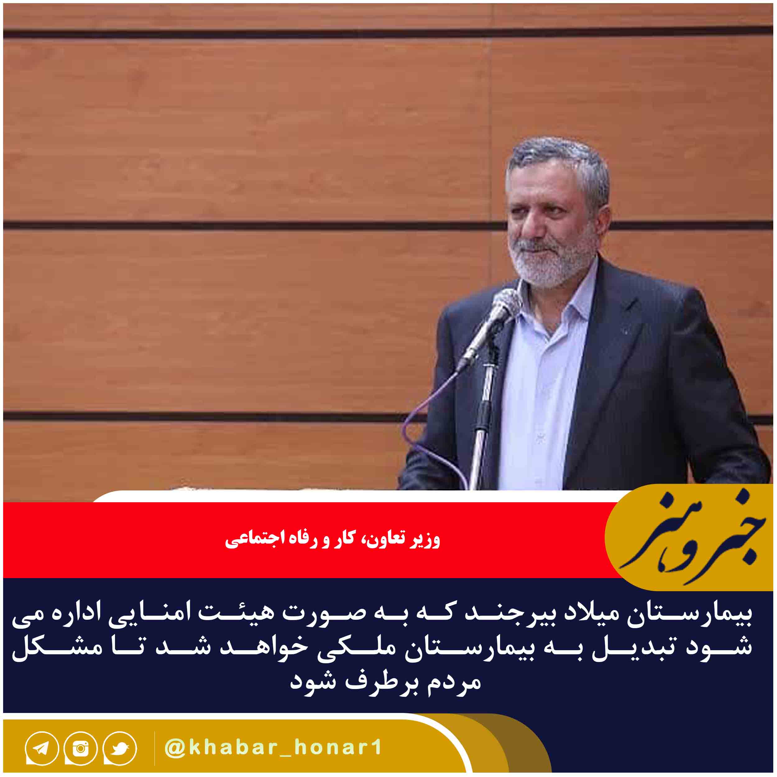 ?وزیر تعاون، کار و رفاه اجتماعی گفت: بیمارستان میلاد بیرجند که به صورت هیئت امنایی اداره میشود تبدیل به بیمارستان ملکی خواهد شد تا مشکل مردم برطرف شود.